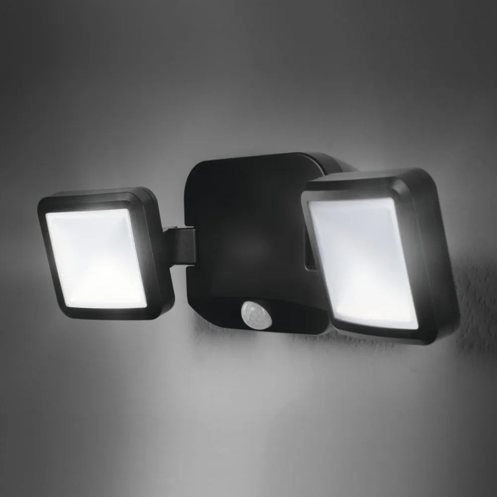OSRAM Væglampe Med Sensor|Udendørs Spot>LED-udendørs vægspot DOUBLE, sort 2 lyskilder, batteri