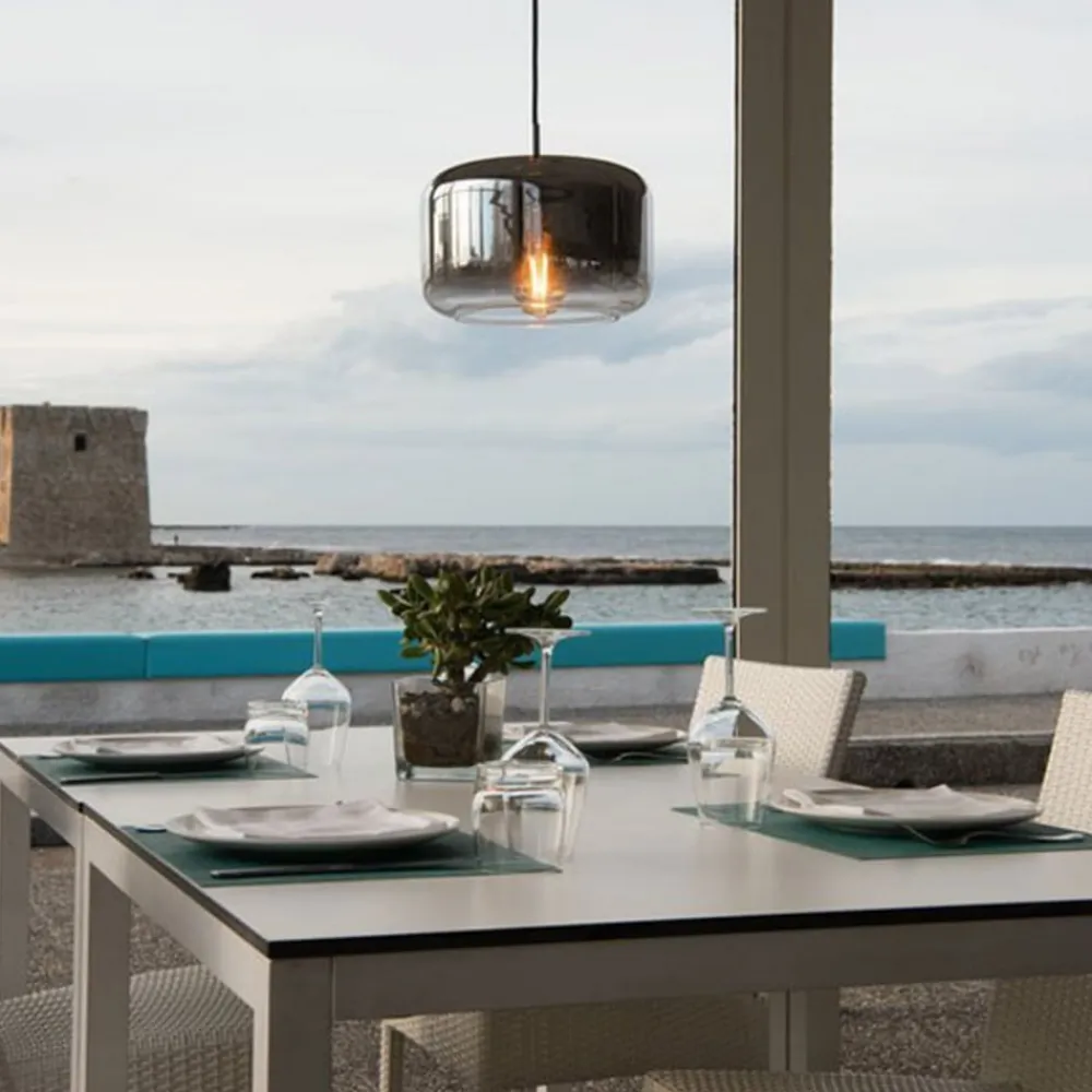 Den elegante, tidløst smukke Pantilo pendel har en bred, afrundet cylinderform. Den er udstyret med et mørkt tekstilkabel, der ender i glasskærmen via et metallisk element. Den blanke skærm er tonet øverst og smelter sammen i et klart område i bunden. Dette flydende kursus giver Pantilo sit karakteristiske udseende, som også bruges i lysfordelingen. Mens der er blød grundbelysning i det øverste område, kommer lyset uhindret nedad. Uanset om det er i grupper eller individuelt – pendlen er ideel til belysning af borde, borde og borde. På grund af den gennemsigtige glasskærm skal der vælges en glødelampe til at understrege det dekorative aspekt.