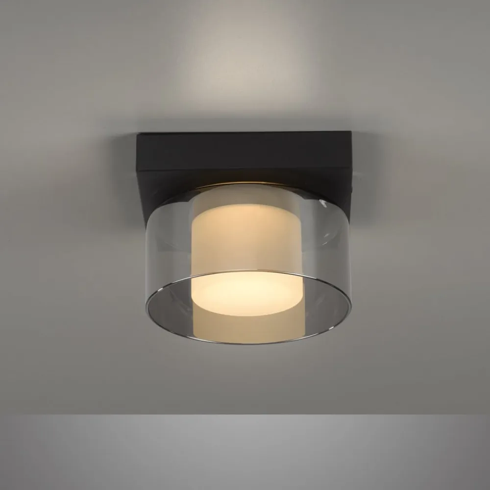 Rika LED-loftlampe af glas, dæmpbar via lyskontakt Den sorte Rika LED-loftlampe imponerer med sit moderne, enkle design. Takket være det røgfarvede glas og den varmhvide LED-pære udsender lampen et blødt lys, som skaber en indbydende atmosfære over dit spisebord. Loftlampen er udstyret med SimplyDim-teknologi. Denne funktion giver dig mulighed for nemt at dæmpe lysets intensitet ved hjælp af den eksisterende lyskontakt. Lysdæmperteknologien styrer lysstyrken via koblingspulsen, så lyset kan dæmpes trinløst fra 100 % ned til 10 % af lysintensiteten. Hvis lyset tændes igen mindre end 3 sekunder efter, at det er blevet slukket, starter dæmpningsprocessen. Når det har nået den lyseste (100 %) eller mørkeste værdi (10 %), forbliver det på denne indstilling i ca. 2 sekunder, før processen starter igen. Hvis lyset skinner med den ønskede lysstyrke under en proces, kan man spare på lysintensiteten ved at slukke for lyset. Hvis man tænder for lyset igen, lyser det med den gemte lysstyrke, og denne indstilling bevares. Det gør det muligt at justere lyset, så det passer til dine behov, og hurtigt finde det frem igen. Placer lampen i stuen eller soveværelset, og indhyll rummet i en hyggelig atmosfære.