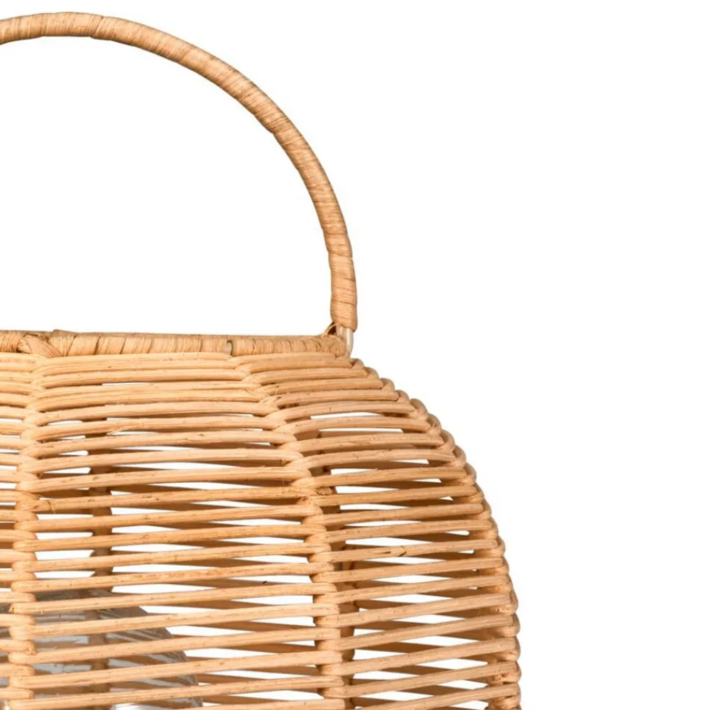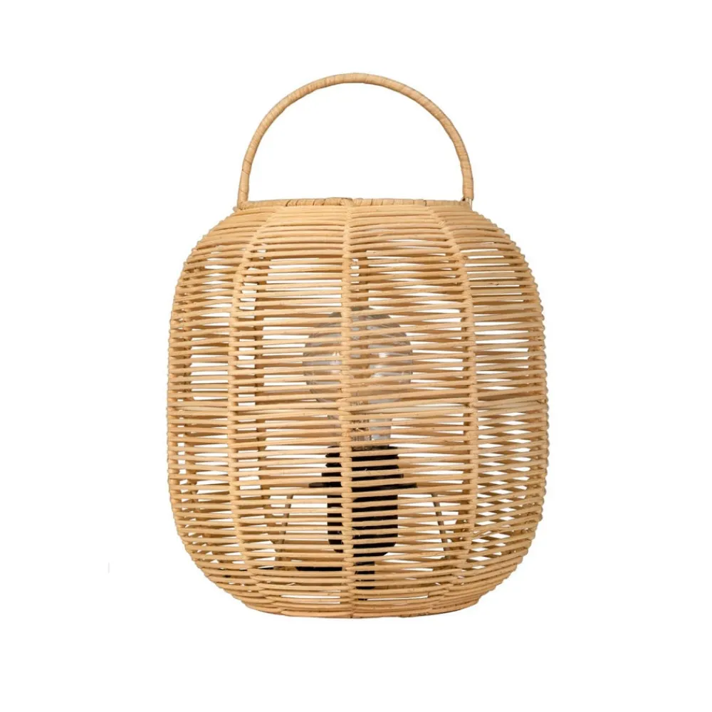 Boho Glow-bordlampe i naturlig boligstil Boho Glow-bordlampen har en lanterneformet krop af rattan og udstråler derfor en masse hygge – helt i tråd med den naturlige boligstil. Når den er tændt, skabes der et smukt lys- og skyggemønster omkring lampen, når lyset falder gennem sprækkerne i rattan-skærmen. inkl. tænd/sluk-knap