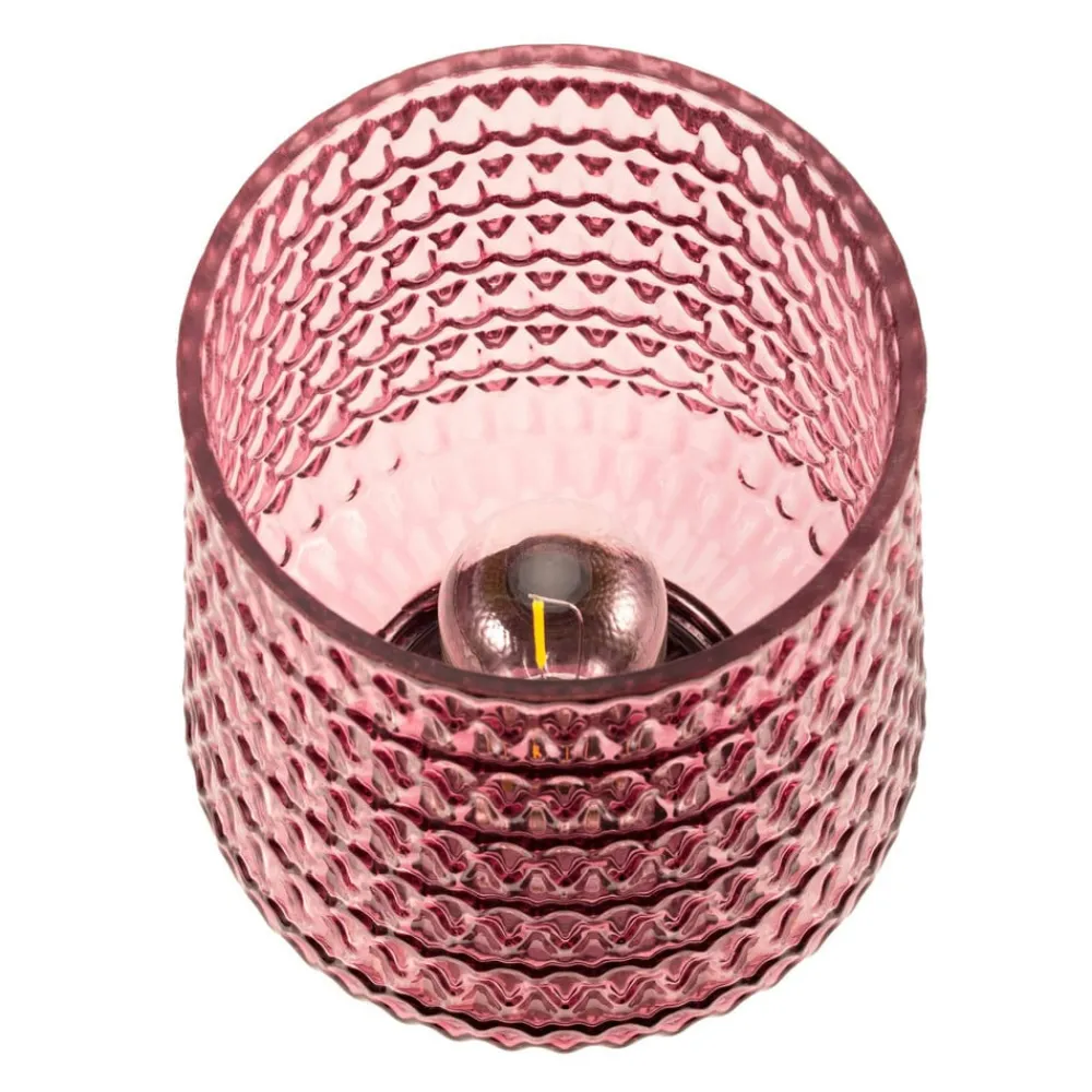 Batteridrevet LED-bordlampe Rose Glamour med glasskærmMed sit æstetiske glas i rosémat giver Rose Glamour-bordlampen et behageligt lys i stuen eller soveværelset. Glassets stilfulde struktur gør denne bordlampe til et særligt dekorativt højdepunkt. Placeret harmonisk i enhver stue skaber den en fantastisk lysatmosfære. Batteridriften gør, at du kan placere den mobile bordlampe overalt og igen og igen – uanset om der er en strømforbindelse i nærheden. Den 6-timers timer slukker automatisk for bordlampen. Vores tip: På større borde, f.eks. spisebordet, ser flere af disse lamper bedst ud ved siden af hinanden. Bemærk: Bemærk venligst, at der ikke medfølger batterier (3 x AA) – ikke egnet til almindelige E27-lamper