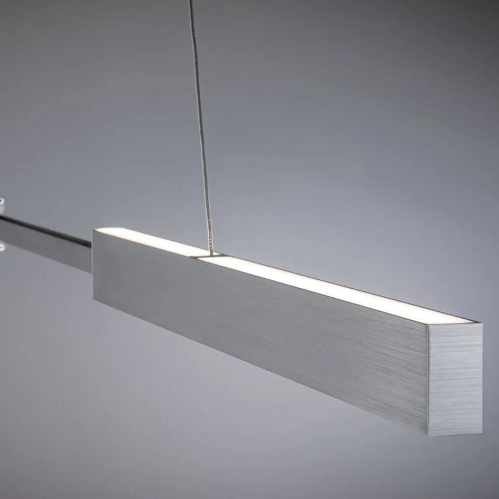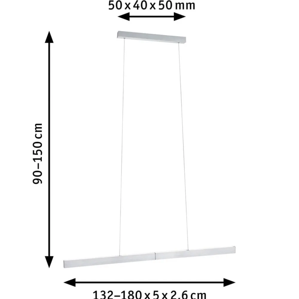 Denne Aptare LED-pendellampe pendelarmatur har en række praktiske og praktiske funktioner, der gør det meget fleksibelt og gør det muligt at tilpasse det til de rumlige forhold og personlige behov. Ud over højdejusteringen fra 90 cm til 150 cm kan den også justeres vandret. Armaturhuset kan forlænges fra 132 cm i længden til op til 180 cm. Dette skaber en optisk adskillelse af lyskilden. Lysstrålen udsendes direkte nedad og indirekte opad, hvilket gør den ideel til belysning af spisebordet.