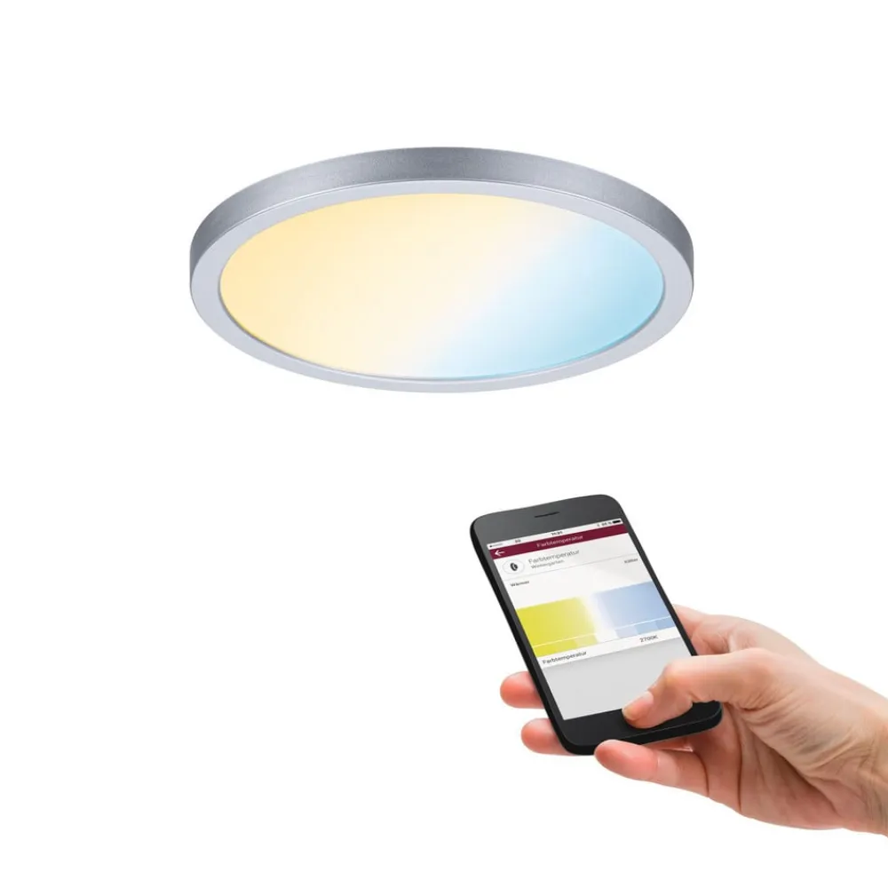 ZigBee funktionen åbner helt nye muligheder for det moderne Areo LED-indbyggede panel: Med den gratis app og Smart Friends Box eller valgfrit med Paulmann ZigBee fjernbetjening (uden app) kan hvidt lysstyring og dæmpning indstilles kontinuerligt blive. Afhængigt af dine personlige behov kan en kold dagslyshvid til koncentreret arbejde eller en hyggelig varm hvid til afslappende timer være behageligt f.eks. B. kontrol fra sofaen.