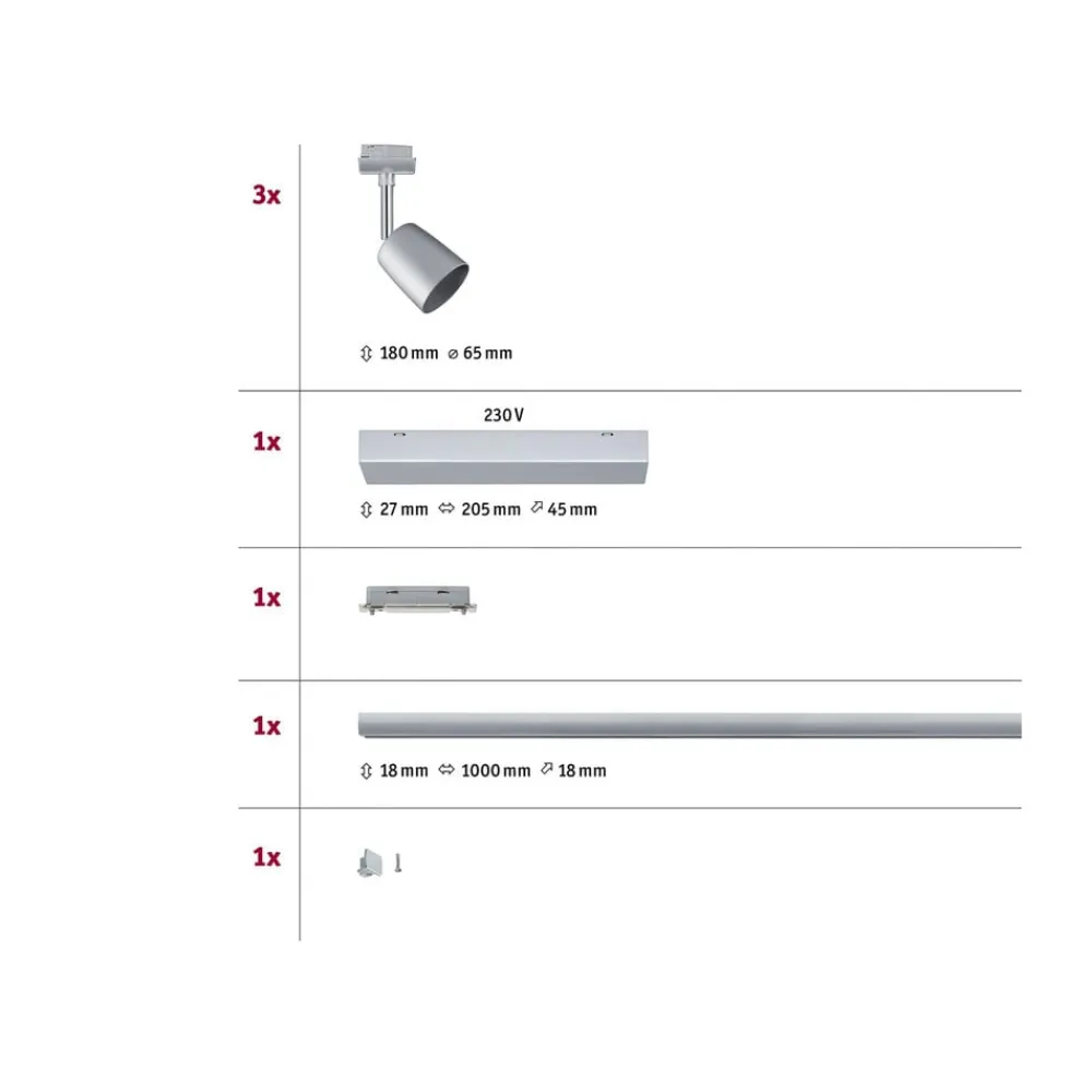 - inkl. strømforsyning, ledningsstik, 1 m skinne og 3 spots