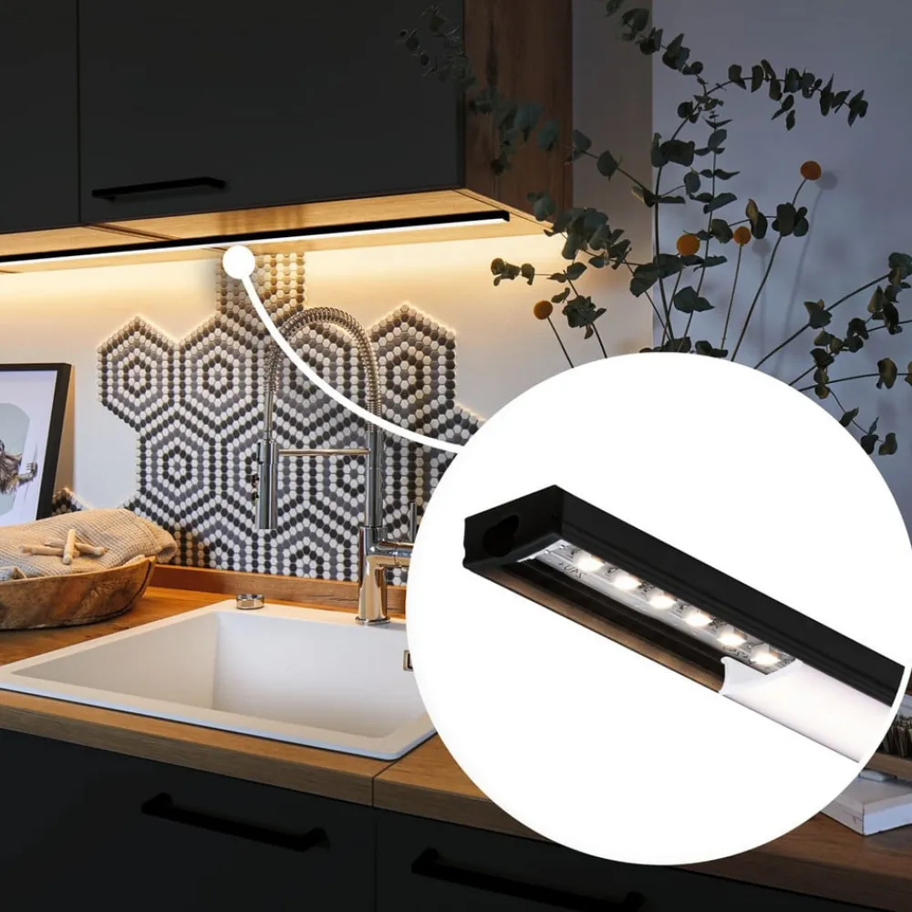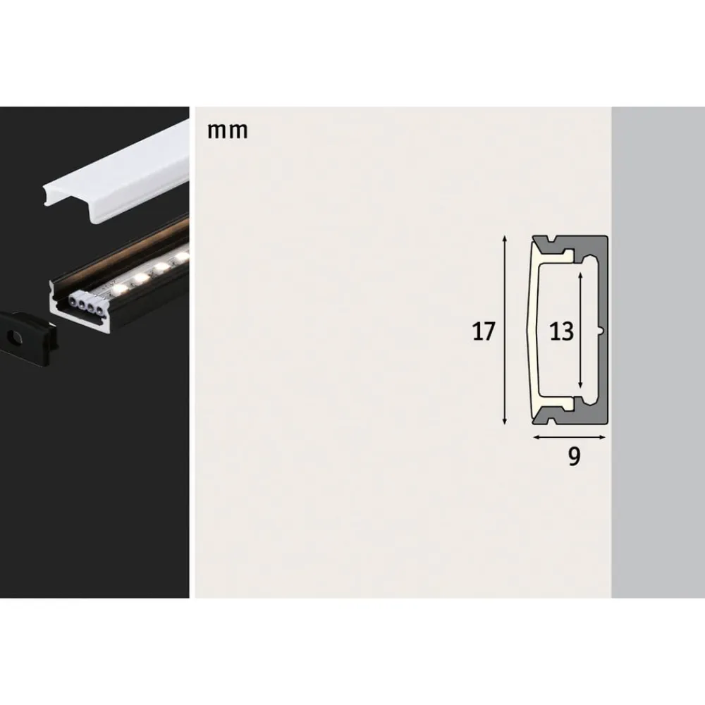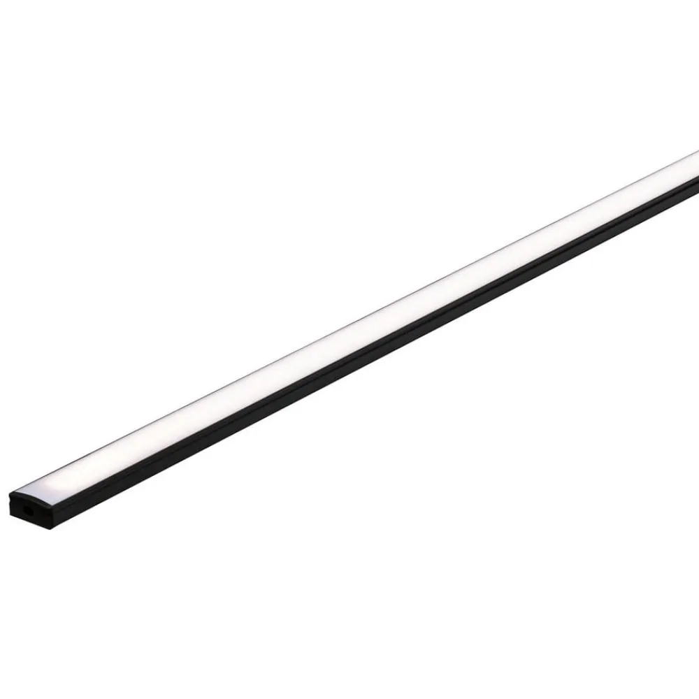 Denne aluminiumsprofil giver en homogen belysning på møbler eller vægge. Den kan monteres med en MaxLED LED-strimmel og har en særlig ensartet lysafgivelse takket være den satinerede plastdiffusor. Den robuste aluminiumsprofil er lakeret i mat sort.