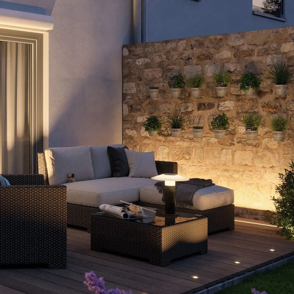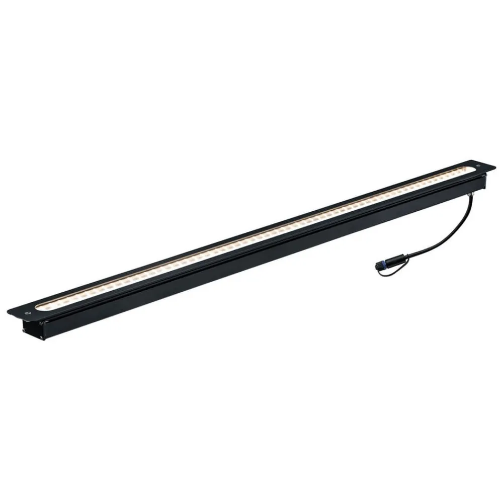 LED-indbygningslampe 93921 Plug & Shine til nedgravning Indbygningslampen 93921 kan bruges i mange forskellige udendørs områder – selv i grønne områder, da den kan køres over med en plæneklipper takket være den planforsænkede ende. Det antracitfarvede hus af trykstøbt aluminium har en lang åbning i toppen, hvorigennem lyset fra de indvendige LED’er udsendes asymmetrisk. Tilstødende facader, planter osv. kan derfor oplyses og fremhæves – Med en driftsspænding på 24 V og vandbeskyttede kabler, tilslutninger og armaturer er Plug & Shine fra Paulmann en alsidig og sikker belysningsløsning til udendørsarealer – Transformator med stik og forlængerledning fås som tilbehør – Kan altid tændes og slukkes via lyskontakt – Der kræves en controller til fjernbetjening (se tilbehør) – Plug & Shine er velegnet til integration i Smart Friends til styring via Smart Friends-appen (til iOS og Android). Der kræves en ZigBee-controller til dette (se tilbehør). Plug & Shine kan også integreres i andre ZigBee-kompatible smart home-systemer (f.eks. til stemmestyring via Amazon Alexa), hvortil der kræves den respektive gateway – maks. kabellængde strømkilde – armatur: 50 m – modstandsdygtig over for poolvand