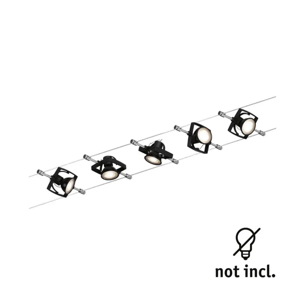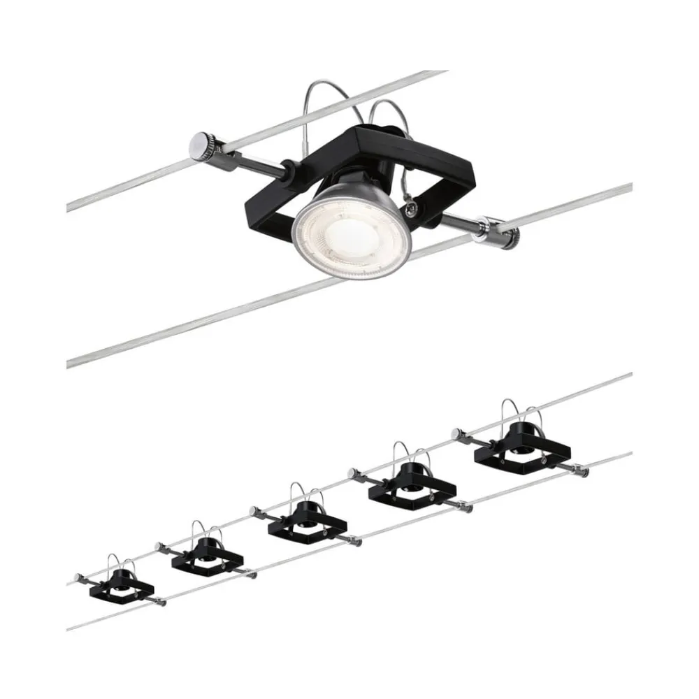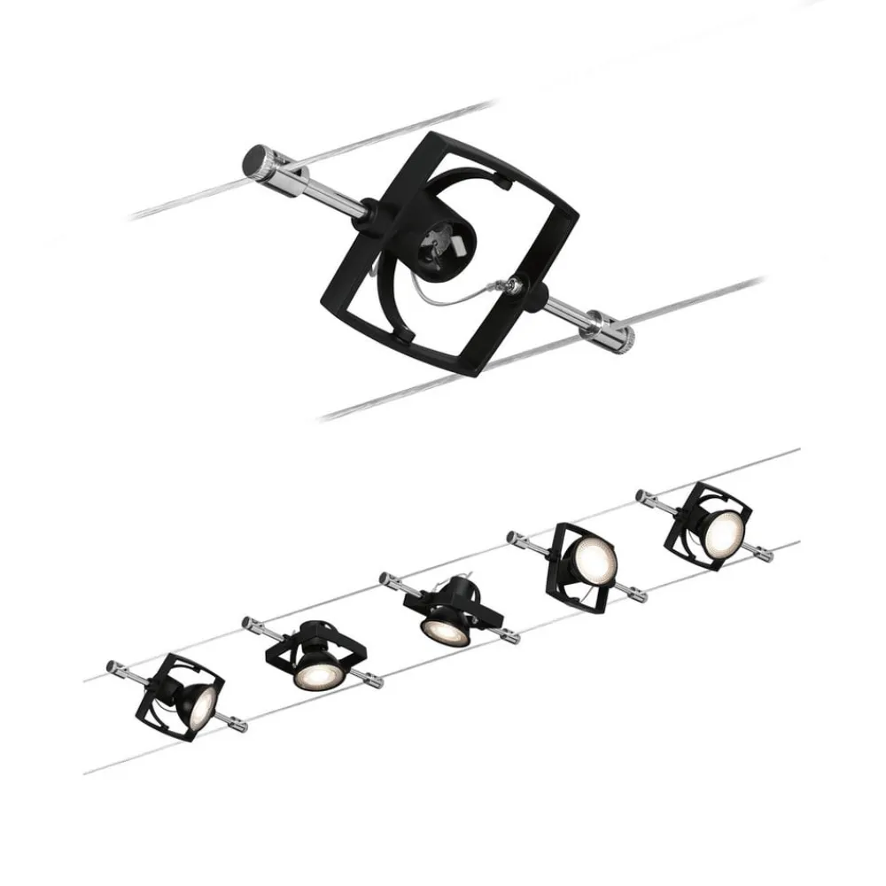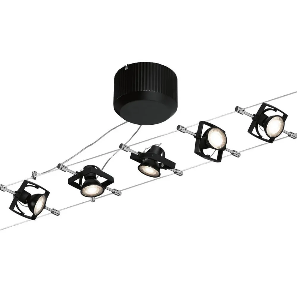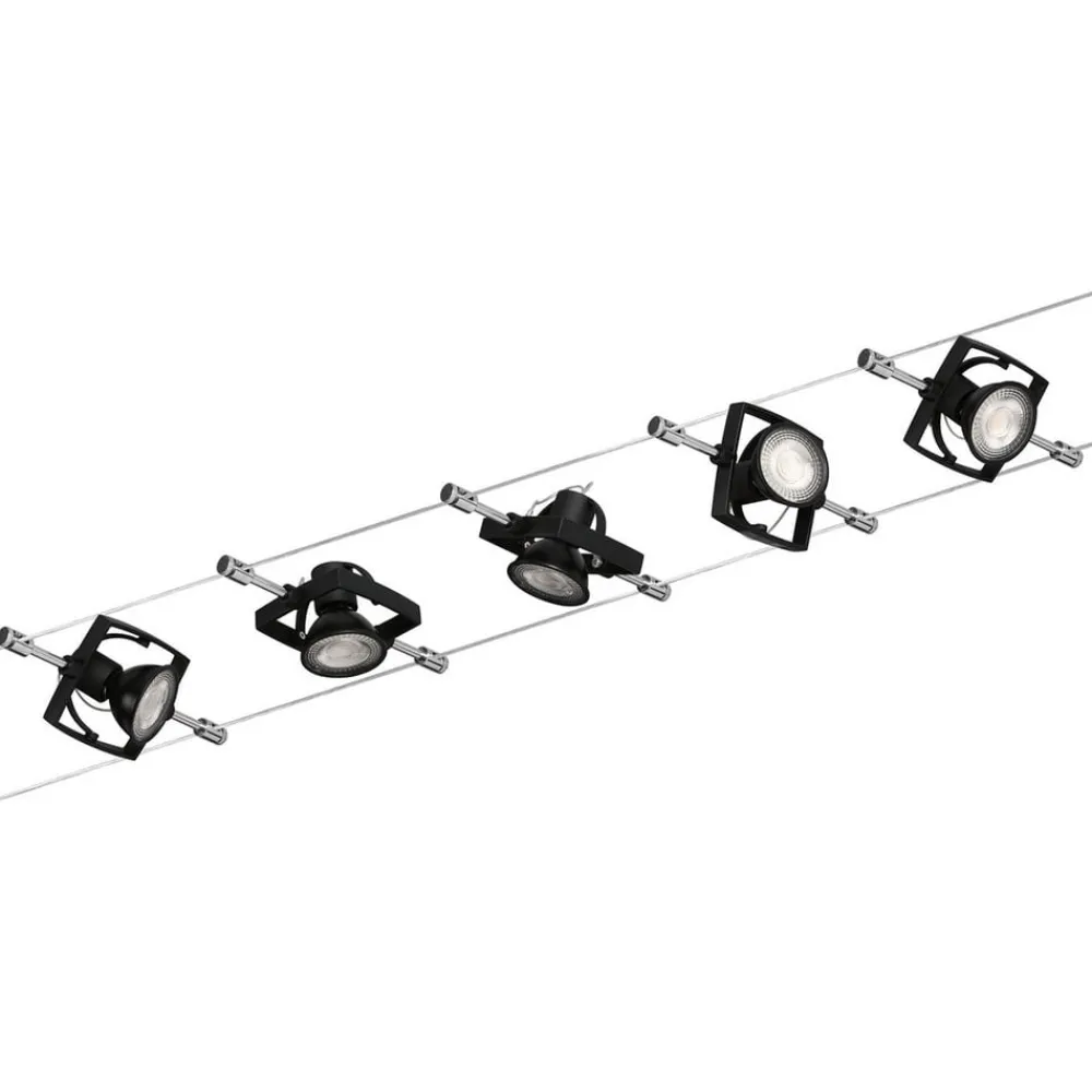 De nuværende bærende reb muliggør en systemlængde på 5 m, hvorpå de fem pletter kan placeres hvor som helst. De kan drejes og muliggør således samtidig belysning af forskellige objekter og absolut fleksibilitet i justering.