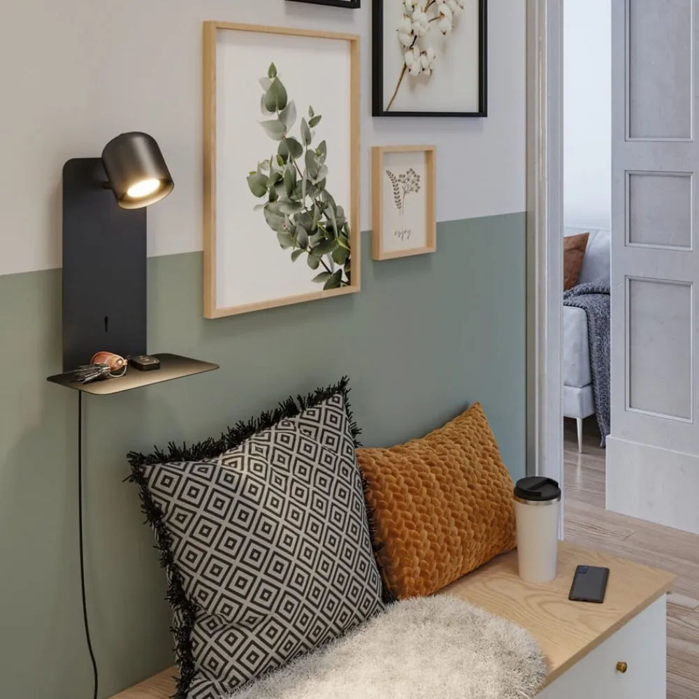 Paulmann Malena USB vægspot med hylde, sort