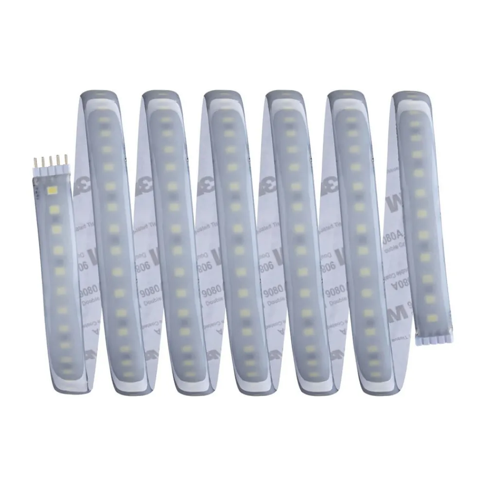 Med en længde på 2,5 meter og kraftige LED’er er denne forlængerliste fra MaxLED-serien fra Paulmann endda velegnet som hovedlyskilde i rummet. En meter MaxLED 1000 lyser lige så kraftigt som en almindelig 75-watt glødelampe. Med IP44-beskyttelse er MaxLED endda designet til brug i fugtige rum og udendørs. Dette sikres ved hjælp af en særlig belægning, der beskytter mod støv og vandstænk. Forlængeren kan kun anvendes sammen med det tilsvarende basissæt inklusive transformer. Den anvendte plast er fleksibel, så den kan fastgøres på flade og ujævne overflader. Grundsættet er tilgængeligt som tilbehør.