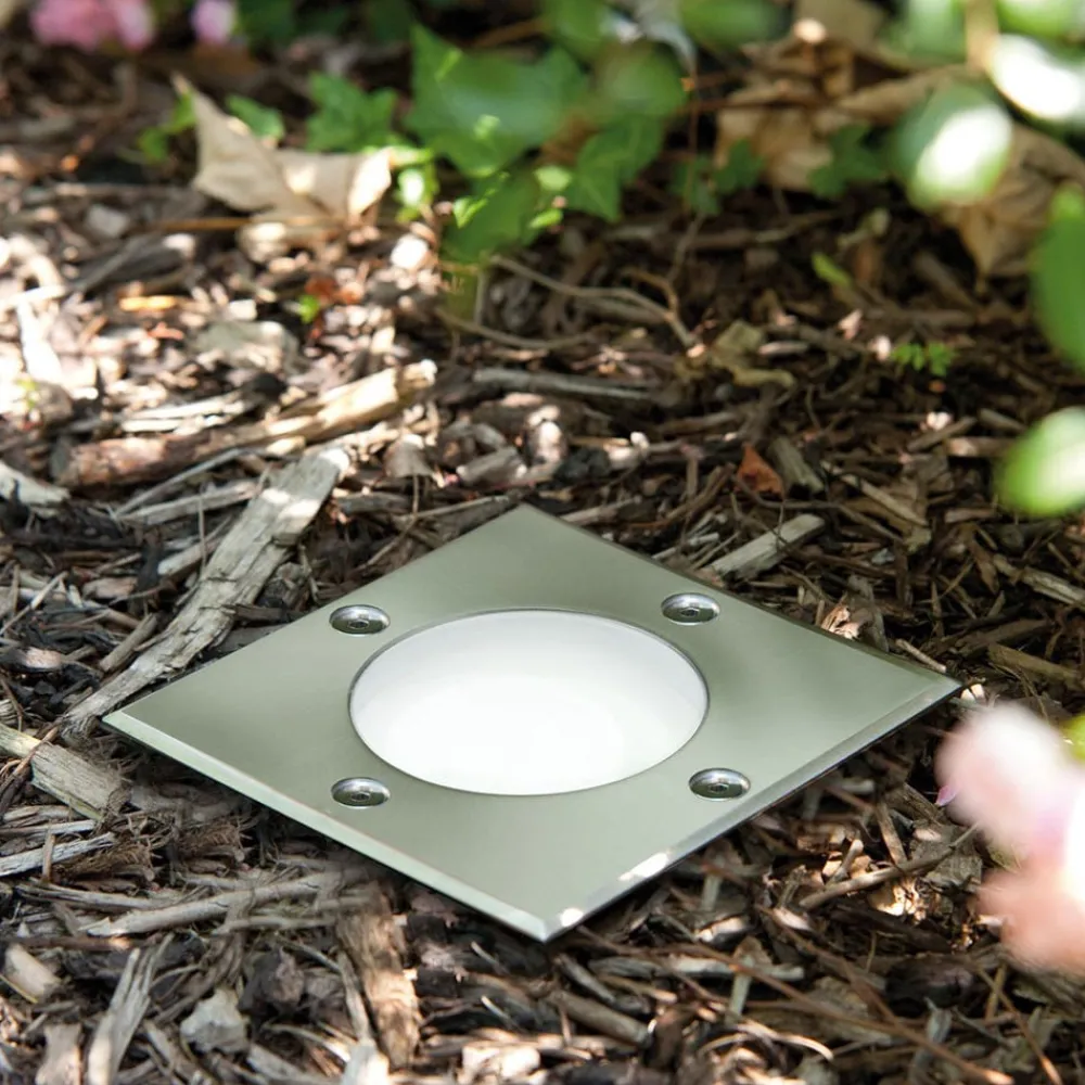 LED nedgravningslampe jordarmatur i firkantet form med GU10-lyskilde, udseende i rustfrit stål