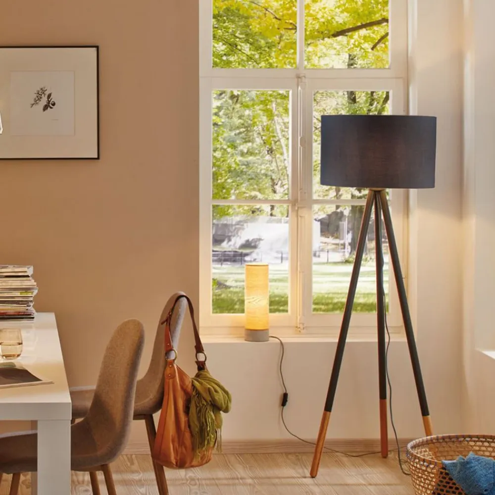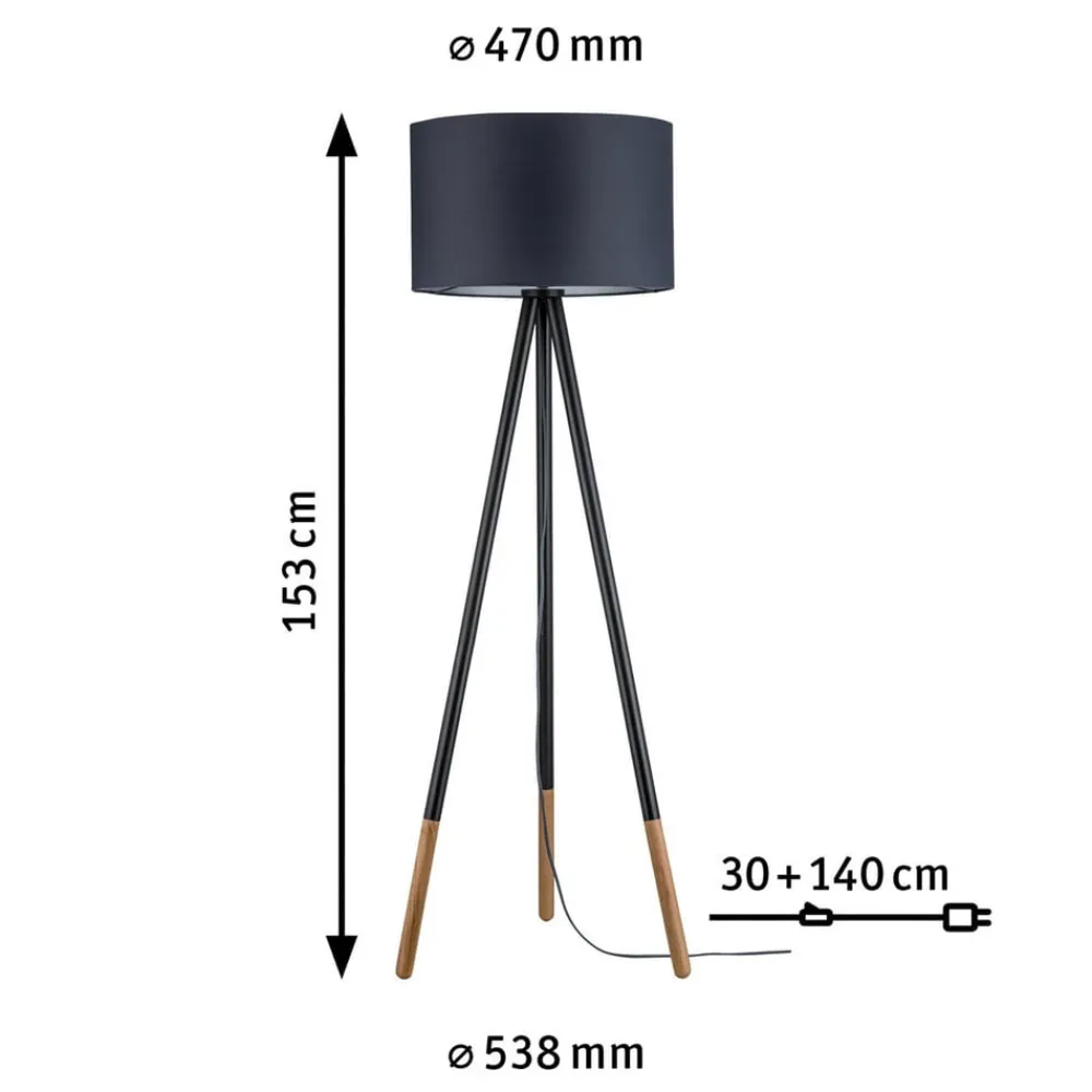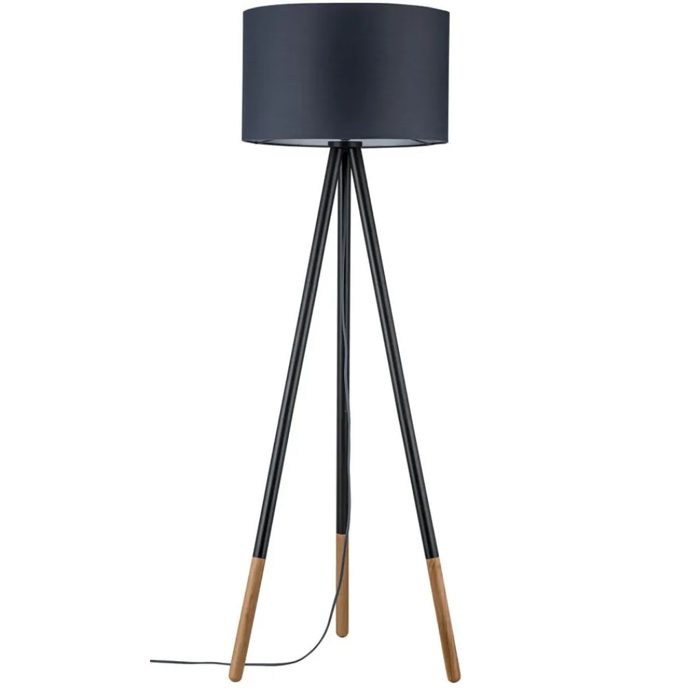 Enkelt design, klare linjer og ofte trædetaljer – disse træk kendetegner nok bedst den skandinaviske stil og findes også i Neordic Rurik-gulvlampen. Lampen har en bred skærm i tromleform, som består af gråt tekstil. Denne er baseret på en trebenet ramme af metal, som på den ene side er visuelt tiltalende og på den anden side giver den nødvendige stabilitet. Trædetaljerne i enderne af de tre ben danner en varm kontrast til lampens overvejende kølige farve.