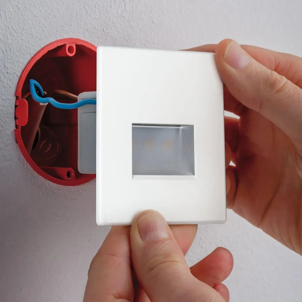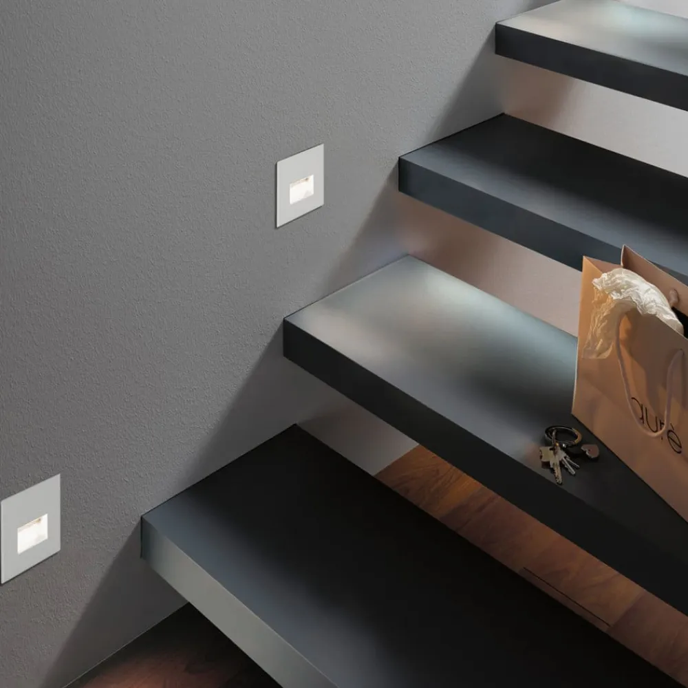 Lyset fra LED’erne i det kvadratiske Edge LED vægindbygningsarmatur stråler nedad gennem den skråt udformede lysudgang, så gangarealer i gangen eller trappeniveauet bliver perfekt og sikkert oplyst. LED-indbygningsarmaturet kan installeres i standard indbygningsdåser med en diameter på 6 cm. Det kan bruges til at skabe smukke lyseffekter, især når flere armaturer installeres i en væg til belysning af trapper eller korridorer.