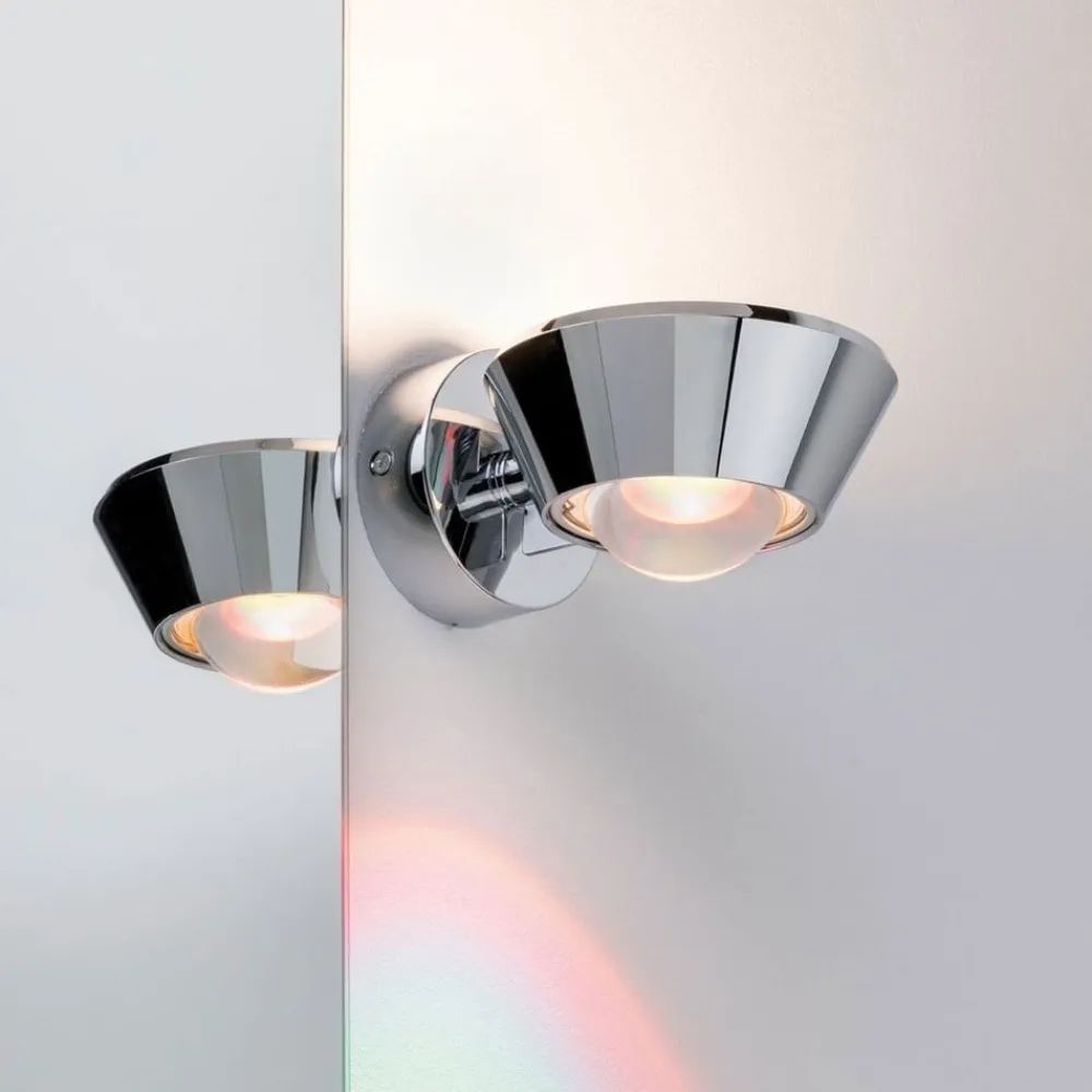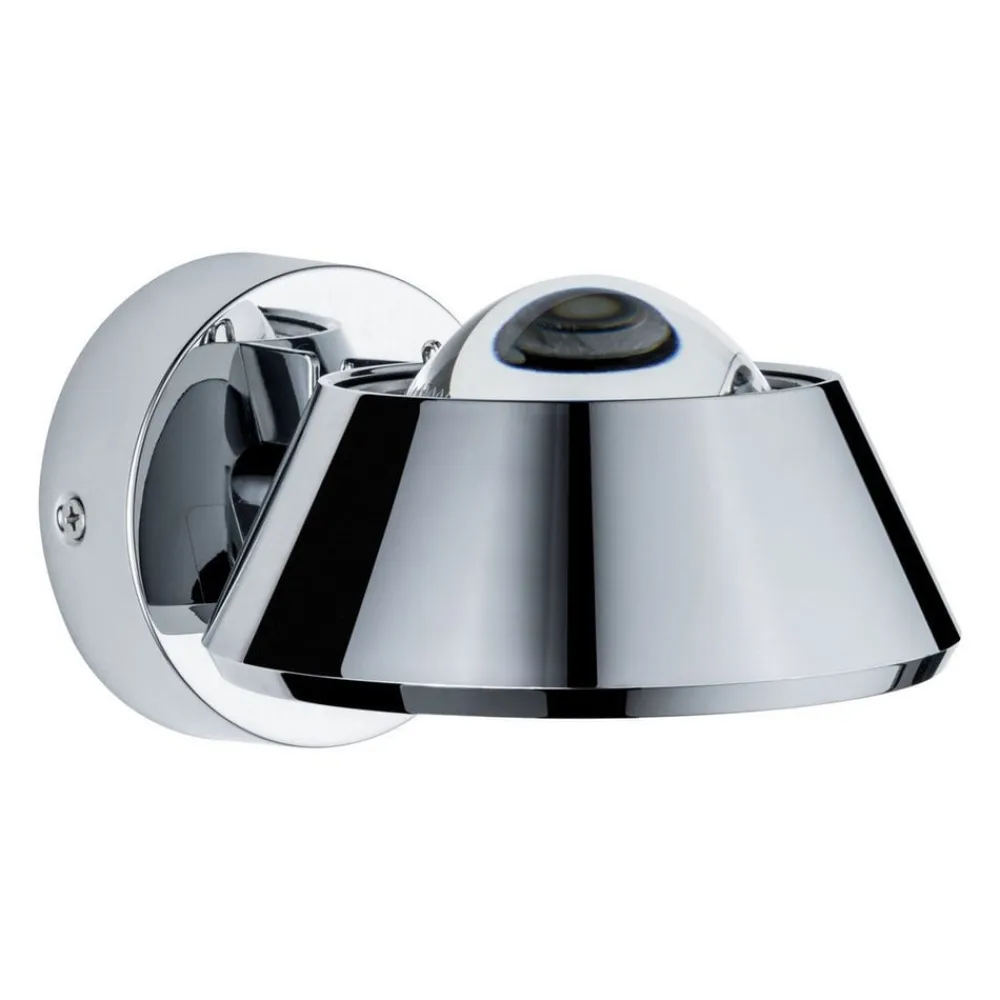 Denne LED-væglampe er et spothoved med en LED-lyskilde, der skinner opad og nedad. Man kan med en sprængring anbringe en dikroitisk folie (inklusiv) på glaslinsen i den nedre del, der giver særlige lyseffekter. Spotten kan vippes 180°, så der ved at lyse på væggen kan skabes indirekte belysning. Da den er IP44-beskyttet mod vandstænk kan lampen også uden problemer anbringes på badeværelset.
