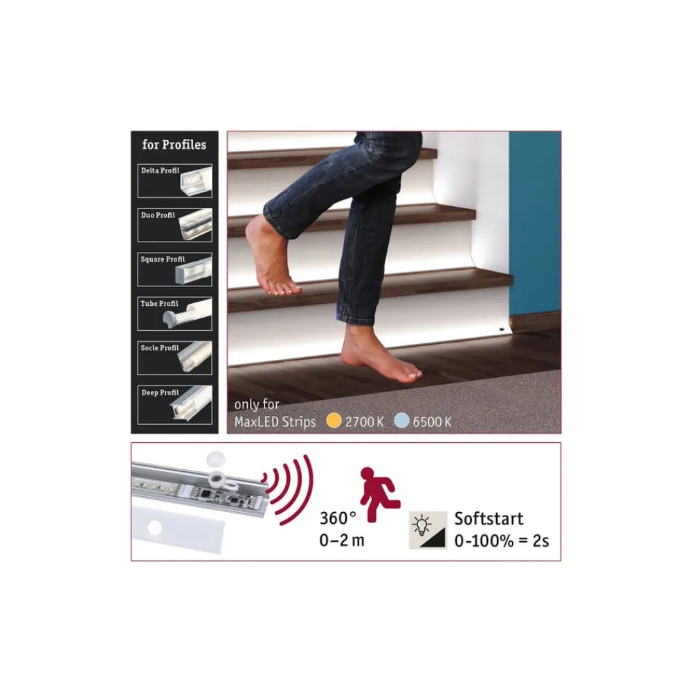 Bevægelses- og lysstyrkesensor til automatisk skift af LED-strips