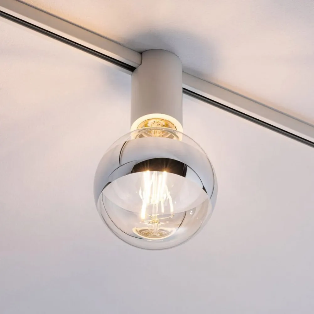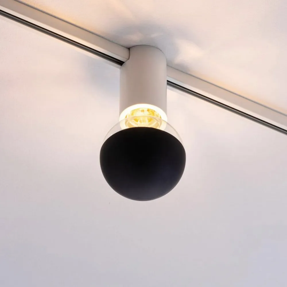 URail Spot Ceiling Socket – E27-fatning til URail-skinnesystemet Denne E27-fatning til URail-skinnen er beregnet til kombination med dekorative lyskilder, f.eks. spejle eller glødelamper i mange forskellige størrelser og former. Den indvendige E27-fatning og skinneholderen er skjult bag metaldækslet.