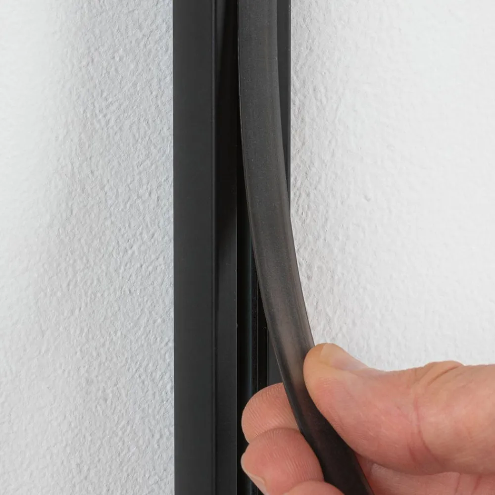 URail Safety Cover Strip er fremstillet af sort plast og er designet som et dæksel til URail skinnenes indre for at beskytte mod indtrængen af støv og fremmedlegemer.