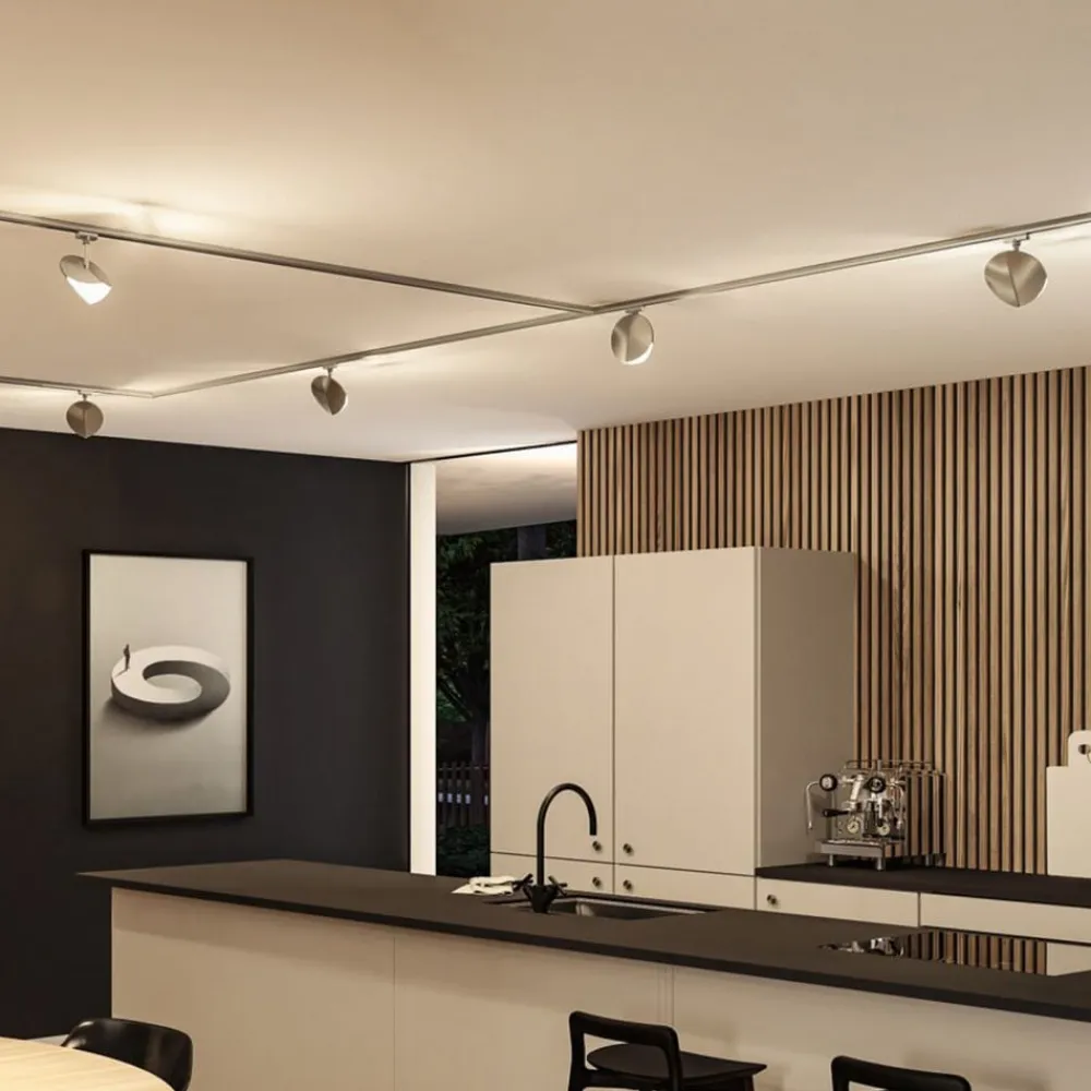 URail Spot Alejandro er et blikfang i skinnesystemet og værdifulder rummet med sit stilfulde design. 3-trins dæmpbar funktion gør det muligt at styre lyset nemt med den eksisterende vægafbryder uden behov for en ekstra vægdimmer. Med dæmpningsniveauer på 100 %, 50 % og 25 % tilbyder spotten fleksibel lysstyring, der passer til enhver stemning og situation. Lysudstrålingen kan styres i den ønskede retning ved hjælp af spotlightens dreje- og svingfunktion. Takket være den forsænkede LED-chip med diffusor fordeles lyset blændfrit og jævnt, hvilket skaber en behagelig atmosfære. Særligt praktisk er hukommelses- og resetfunktionen, der gør det muligt at bevare den sidst indstillede lysstyrke eller nulstille den efter behov. Spottenes design giver ethvert rum en vis elegance og sætter stilfulde accenter.