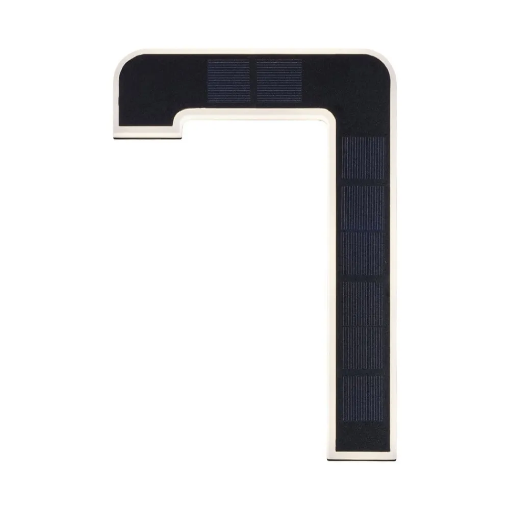 Udendørs solar-husnummer i sort med varmhvid belysning Solar-husnummeret er udstyret med et usynligt integreret solcellemodul, som oplader det integrerede, udskiftelige batteri i løbet af dagen, så det oplyste husnummer kan monteres på facaden, husmuren eller et andet sted helt uafhængigt af en strømtilslutning. Så snart det bliver mørkt, oplyses husnummeret indirekte af de integrerede, varmhvide LED’er. Lyset skinner sidelæns gennem nummerets satinerede ramme – Maks. belysningstid med fuldt batteri 8 timer – Batteriopladningstid 12 timer – Batteri 1 x AAA 1,5V (micro), medfølger