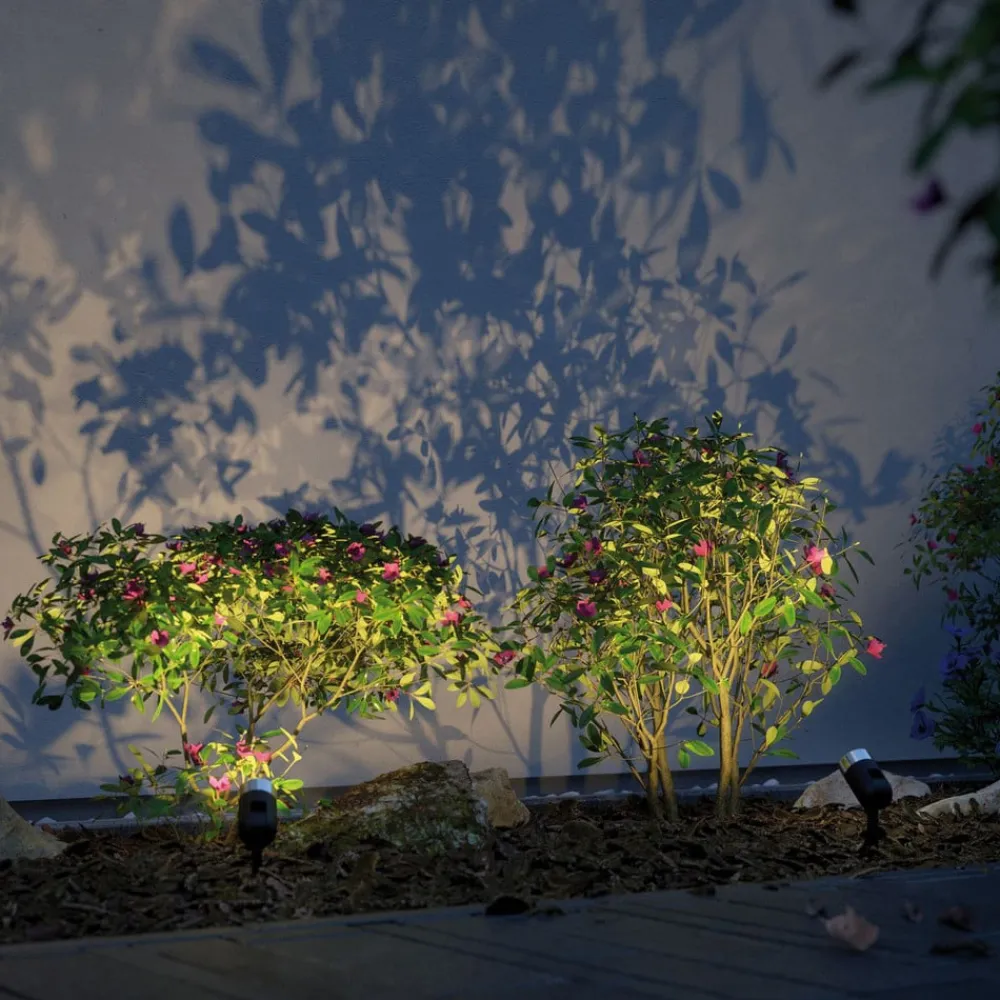 ZigBee-kompatibel lampe med jordspyd Pike for Plug & Shine med RGBW-LED’er Fra funktionelt orienteringslys på gangstier og indkørsler til farverig stemningsbelysning under en havefest har LED-spottet med jordspyd med sine varmhvide til dagslyse hvide eller farverige LED’er det rigtige lys til enhver anvendelse. De tre lamper i sættet kan tilsluttes tilslutningskablets udgange på 200 cm, 350 cm, 500 cm og 515 cm, mens den medfølgende strømforsyningsenhed tilsluttes 230 V-stikket – Med en driftsspænding på 24 V og vandbeskyttede kabler, tilslutninger og lamper er Plug & Shine fra Paulmann en alsidig og sikker belysningsløsning til udendørs brug.