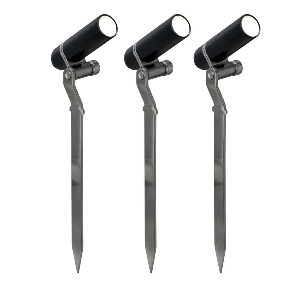 LED-lampe med jordspyd Plug & Shine Plantini i et basissæt med 3 Med sættet med tre drejelige Plantini lamper med jordspyd kan skulpturer, vægge og planter i udendørsarealer fremhæves på en dygtig måde. Med sit cylindriske, antracitfarvede hoved ser spotlightet elegant og moderne ud. Sættet indeholder alle de nødvendige komponenter til idriftsættelse, herunder en plug-in-transformer og et tilslutningskabel (udgange til 200 cm, 350 cm, 500 cm, 515 cm). Med separat tilgængelige forlængerkabler, controllere og andre lamper fra Plug & Shine-systemet kan opsætningen til enhver tid udvides – Med en driftsspænding på 24 V og vandbeskyttede kabler, tilslutninger og lamper er Plug & Shine fra Paulmann en alsidig og sikker belysningsløsning til udendørsarealer.