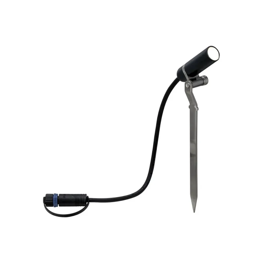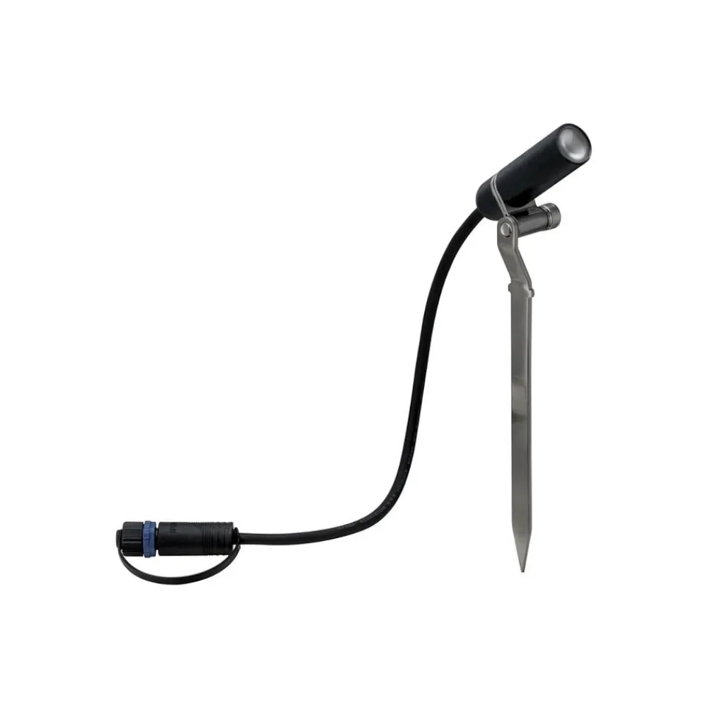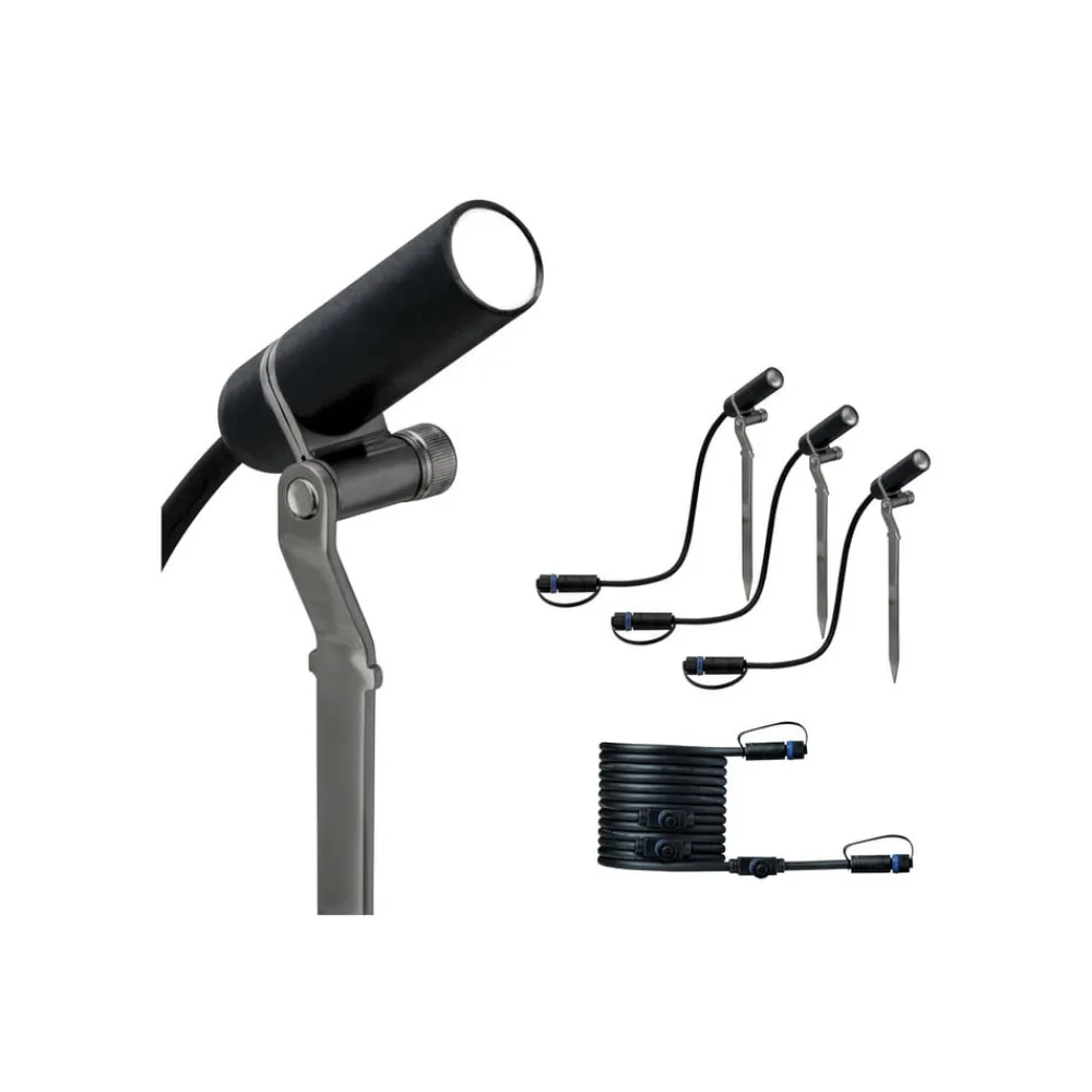 Spot med jordspyd Plug & Shine Plantini i et 3-delt udvidelsessæt Dette udvidelsessæt er ideelt som en tilføjelse til et eksisterende Plug & Shine-system til målrettet accentbelysning. Plantini lampen med jordspyd har et antracitfarvet, cylindrisk hoved. Det kan drejes, så planter, facader og skulpturer kan fremhæves optimalt. Et tilslutningskabel (udgange til 200 cm, 350 cm, 500 cm, 515 cm) er inkluderet; et stik og en transformer til 230 V-tilslutning er ikke inkluderet – Med en driftsspænding på 24 V og vandbeskyttede kabler, tilslutninger og lys er Plug & Shine fra Paulmann en alsidig og sikker belysningsløsning til udendørsarealer.