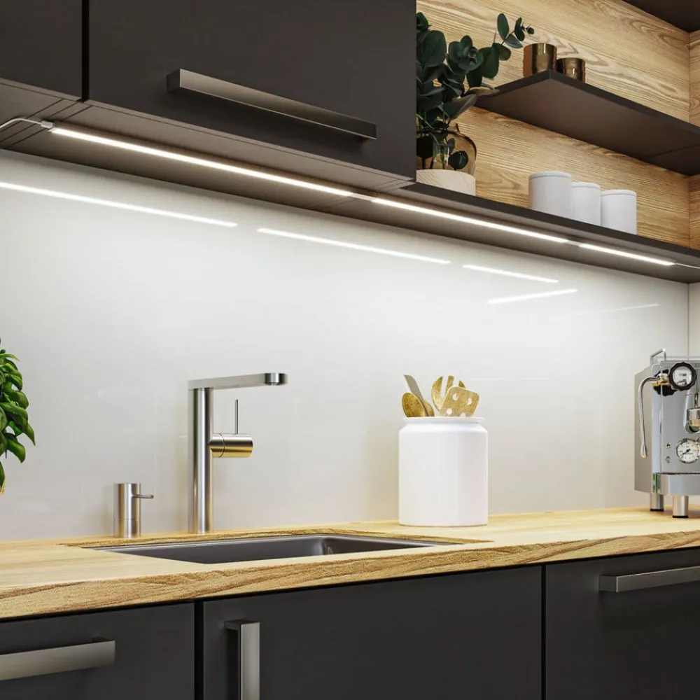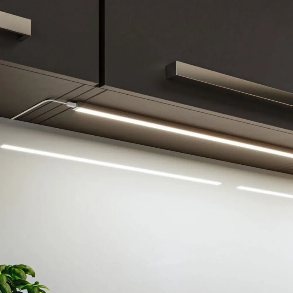 Moderne køkkenbelysning – LED underskabslampe Inline, udvidelsessæt med to varmhvide armaturer LED underskabslampen Inline er designet til funktionel belysning af køkkenbordplader. Den består af en slank aluminiumsprofil og afskærmning med rengøringsvenlige overflader og indeholder varmhvide LED’er – forlængersæt med to lamper, tilslutningskabel, monteringsmateriale – designet til at supplere et startsæt (op til en maksimal samlet effekt på 24 W) – uden strømforsyningsenhed, uden afbryder – drift kun mulig i kombination med et Inline-startsæt!