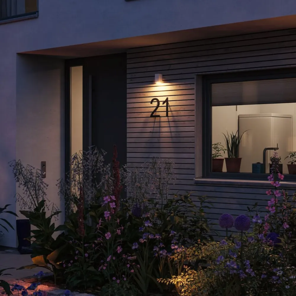 LED udendørs vægarmatur Flame med insektvenlig lysfarveEn terning af metal med nedadrettet belysning – LED udendørs vægarmatur Flame af metal passer på enhver facade og er særligt effektiv i kombination med flere armaturer. Der er installeret LED’er med en ekstra varm lysfarve (guldlys 2.200 K) i armaturet. Dette lys ligger uden for det synlige område for de fleste insekter og opfattes derfor ikke. Lav vedligeholdelse, holdbar, robust og energieffektiv – disse egenskaber kendetegner LED-udendørs vægarmaturet Flame.