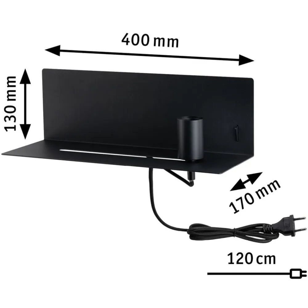 Væglampe Devara med praktisk hylde, kabel og stik