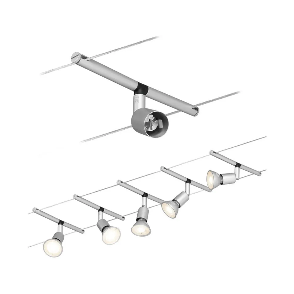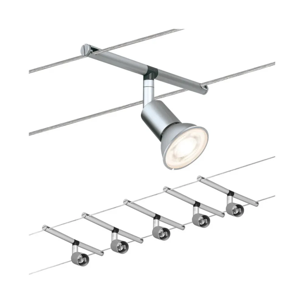 Lægning af den strømførende wire er helt enkel og grundet den moderne 12V-teknologi mere sikker og væsentlig lettere end ved almindelige 230 V-installationer. Parallelwiren tjener til stabilisering af lampen og muliggør dermed den fulde installation. Den enkeltstående spot er fuldstændigt frit placeret på wiren. Systemet er nemt at montere. Det muliggør en alsidig lyssituation i rummet – flere objekter kan oplyses samtidigt.