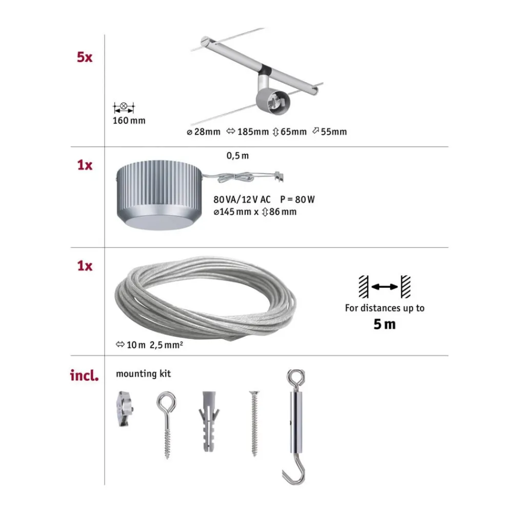 LED wiresystemet Spice Salt leveres som komplet sæt (inkl. tilbehør som wire, transformer, holder)