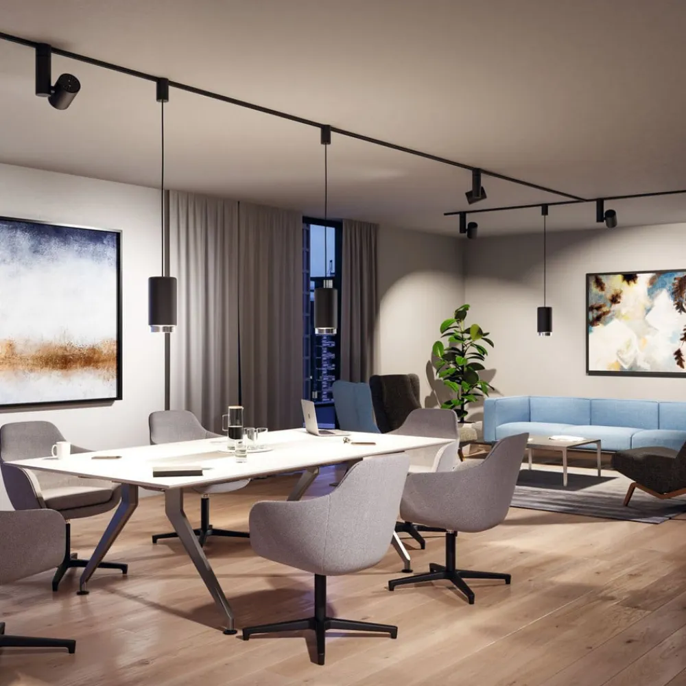 Zeuz URail LED-spot til strømskinner Denne moderne spot er designet til strømskinner, så den effektivt oplyser bolig- og erhvervsarealer. Som lyskilde er der installeret højeffektive COB-lysdioder, der genererer en høj lysstrøm på 3.680 lumen. Spottet kan drejes 350°, så lyset rettes præcis derhen, hvor der er brug for det. Det betyder, at selv mørke hjørner kan belyses tilstrækkeligt, og at billeder, møbler og andre dekorative elementer kan sættes i det rigtige lys – eksternt dæmpbar