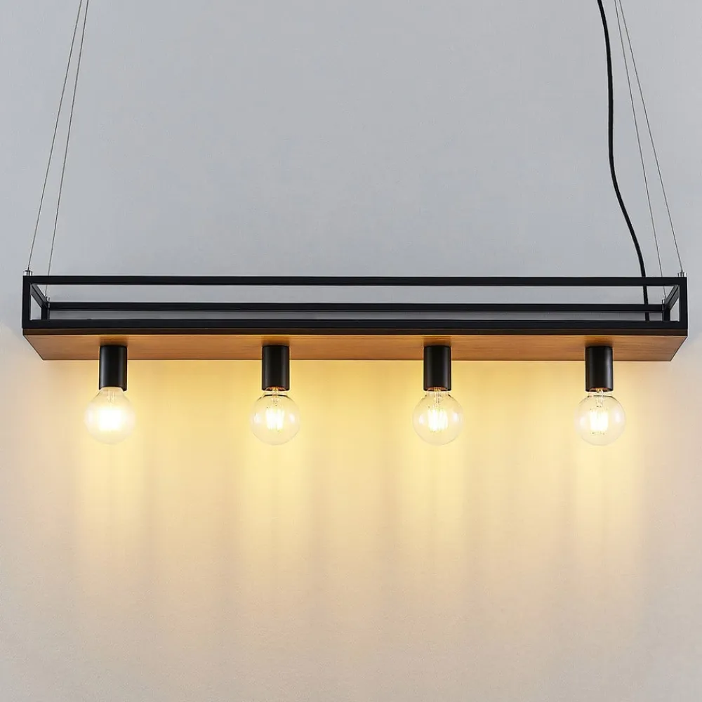 Lindby-pendel Kirista, 4-lys, sort, træ, 100 cm