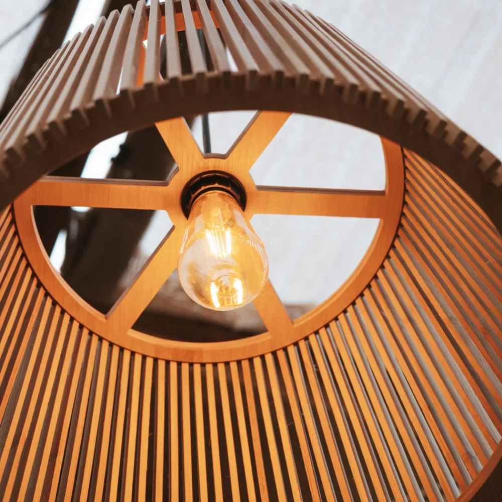 Okinawa pendellampen forener skandinavisk enkelhed med rustik charme og er fremstillet af bambus af høj kvalitet. Denne lampe er ideel til brug på altaner og terrasser, da den har kapslingsgrad IP44, der giver pålidelig beskyttelse mod stænkvand. Kombinationer af træfarvede og sorte elementer giver lampen en tidløs æstetik, der passer harmonisk ind i forskellige udendørsområder. Okinawa kan udstyres med en E27-pære. Hvis man vælger en dæmpbar traditionel glødepære, kan man opnå en fleksibel og tilpasningsdygtig belysning.