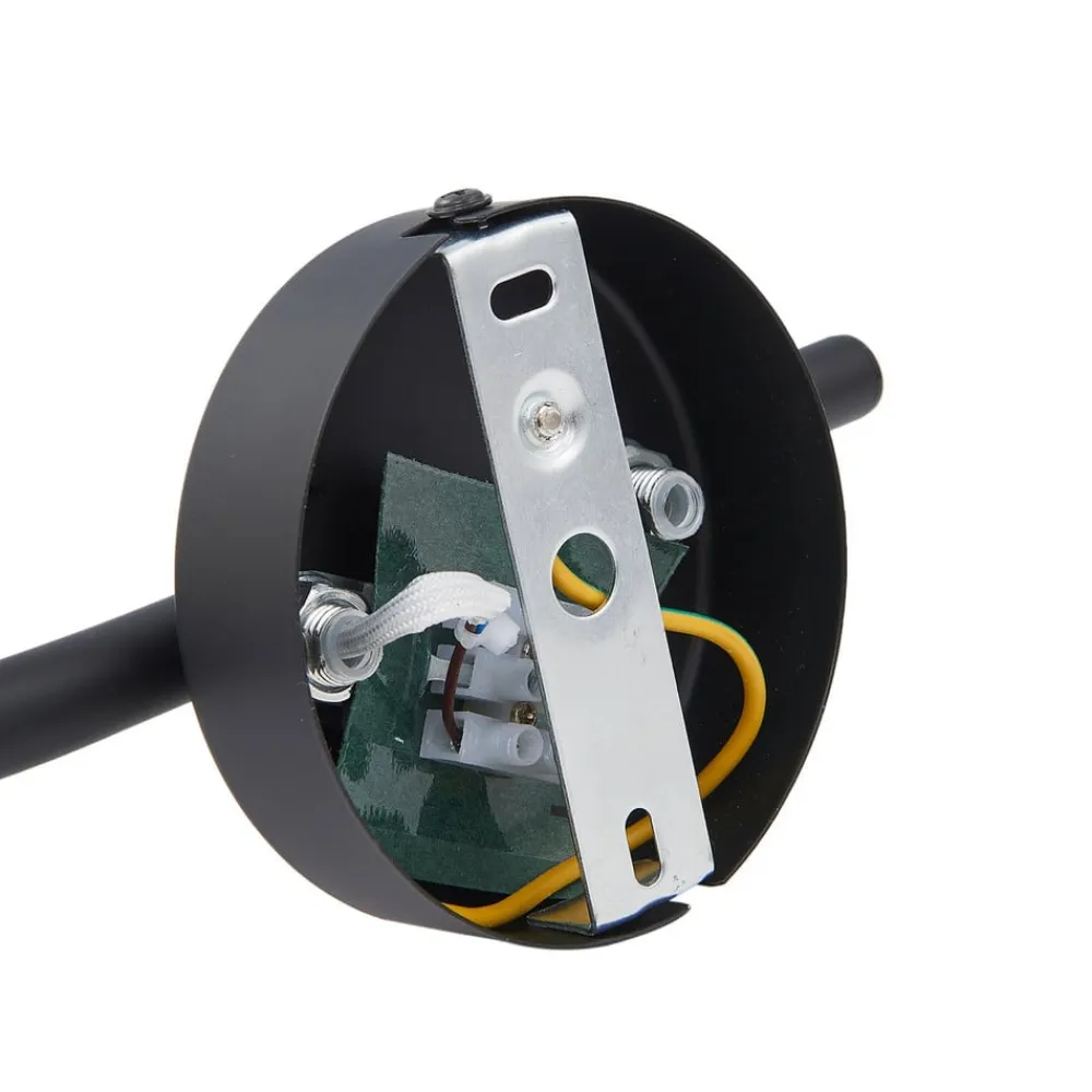 - Skærm – Ø 15 cm, højde 14 cm; vægbeslag – Ø 9 cm, højde 2,5 cm
