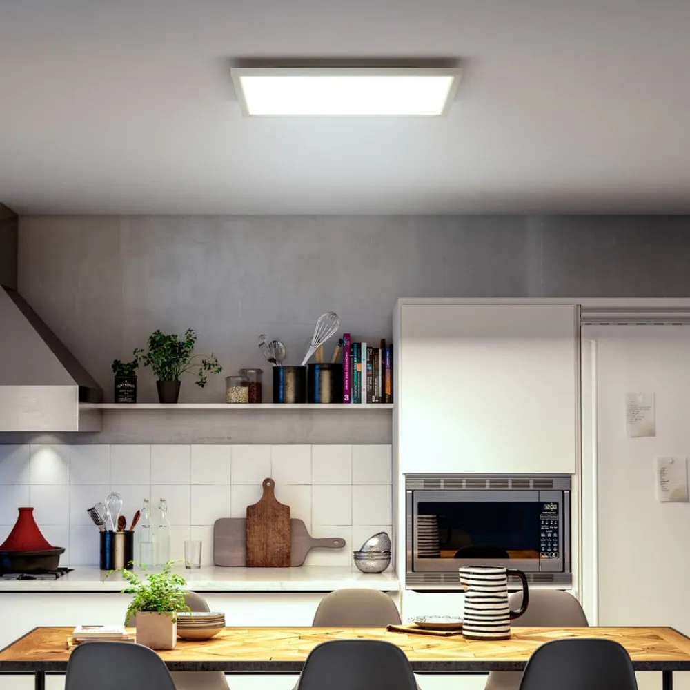Uanset om du ønsker varmhvidt lys til hyggelig tv-kigning eller kraftigt dagslys til koncentreret arbejde i køkkenet, skaber Philips Hue LED-loftpanelet Aurelle altid den perfekte stemning. Det kan ikke kun indstilles til forskellige lysstyrker eller lystemperaturer, men også til forskellige tilstande – enten via Philips Hue-lygtekontakten (ikke inkluderet) eller via appen på din smartphone eller tablet. Takket være det flade design er panelet ideelt til brug i rum med lav loftshøjde.