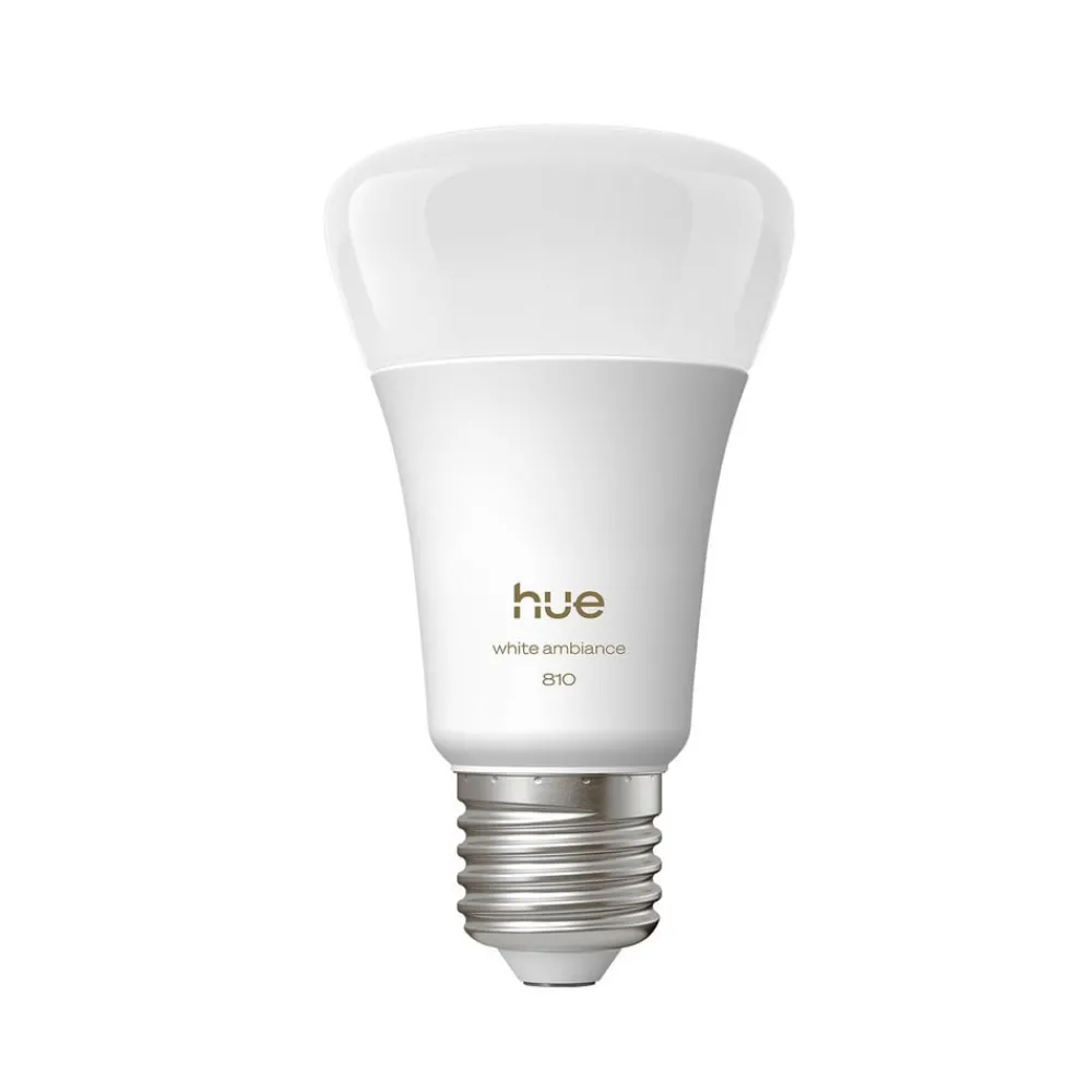 4-pak med strålende hvide 6 W Philips Hue E27 LED-pærer White Ambiance CCT til smart integration via ZigBee eller Bluetooth