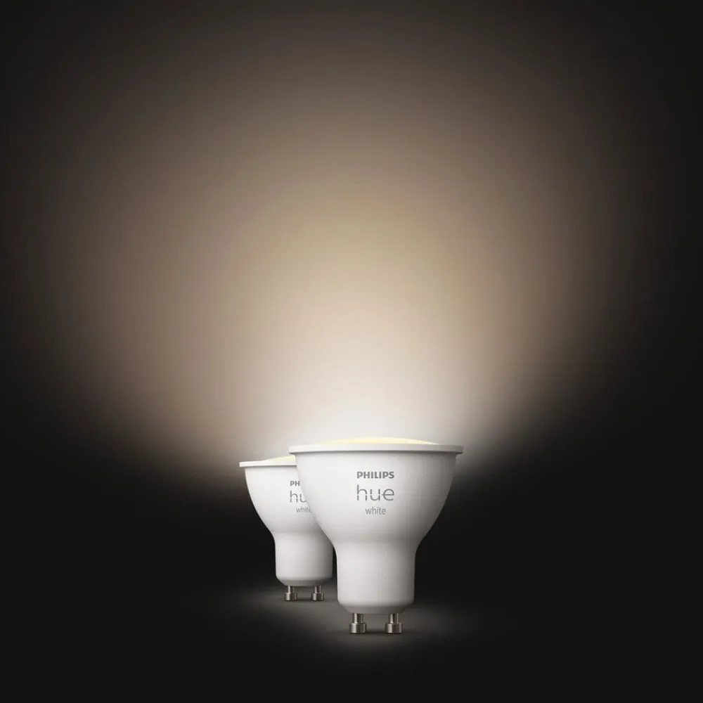 Sæt med to Philips Hue White GU10 LED-pærer – varmhvidt lys til Bluetooth- og ZigBee-styring