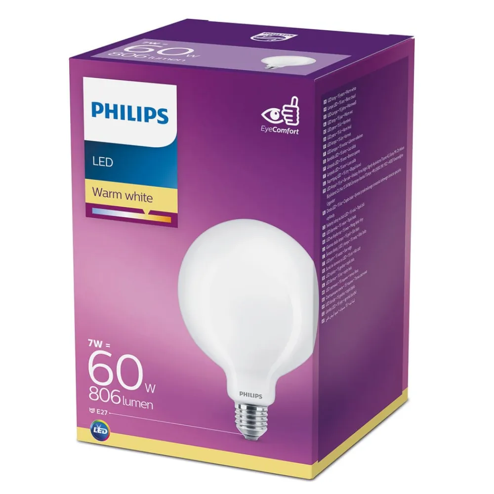 Philips Classic LED-pære E27 G120 7W 2.700K opal