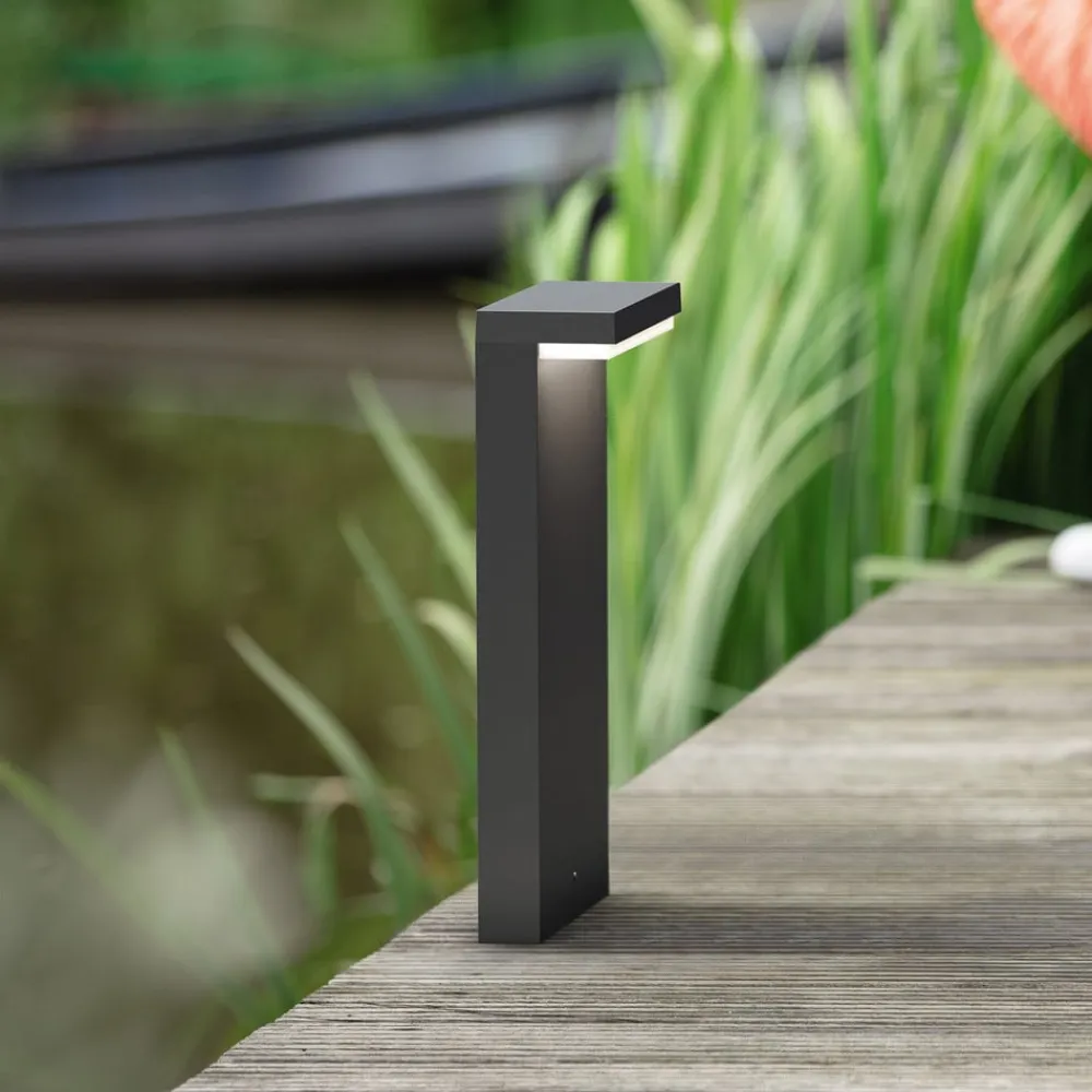 Bustan LED-sokkel: ultraeffektivt afgrænsningslys Bustan LED-sokkel er imponerende på alle måder. Den har et minimalistisk design og passer til mange ejendomme, både med hensyn til stil og den neutrale antracitfarve. Den er desuden udstyret med et ultraeffektivt LED-modul og bruger mindst 50 % mindre energi end konventionelle LED-lys fra Philips. En sokkelbelysning, der er ideel til at fremhæve snublefarer på ejendommen, såsom kanter, trin eller mure.