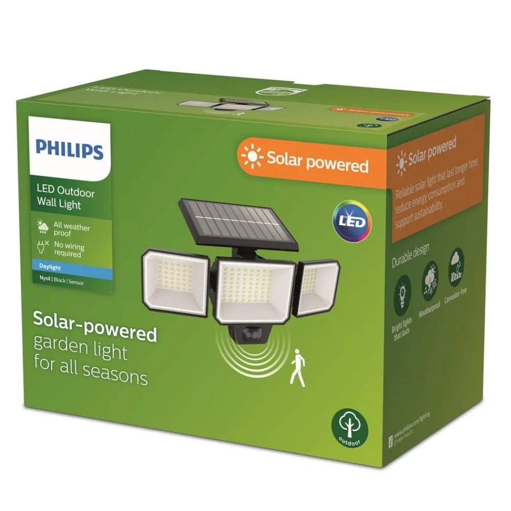 Nysil 3 lyskilders LED-solcellevæglampe er en symbiose af stilfuldt design og energieffektiv belysning. Med sin moderne stil passer den perfekt ind i moderne arkitektur og sætter præg på enhver udvendig væg. Den integrerede LED-lyskilde sikrer langvarig og jævn belysning, mens solcellefunktionen sørger for en selvforsynende energiforsyning. Denne væglampe er ikke kun et visuelt højdepunkt, men også et tilsagn om bæredygtig energiforbrug.