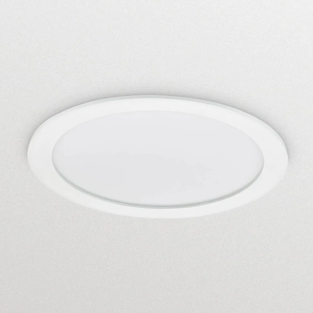 Dæmpbar indbygget loftlampe med LED DN145B, IP44 Den indbyggede loftlampe med LED DN145B fra Philips CoreLine-serien kombinerer neutralt design og effektiv belysning til perfektion. Den består af en lavprofileret aluminiumsramme og en opal plastdiffusor. Sidstnævnte spreder lyset fra LED-modulet jævnt og over et stort område. Det stænktætte armatur kan dæmper eksternt efter behov – Inklusive betjeningsudstyr (eksternt, PSU, DALI) – Omgivelsestemperatur under drift: 0 °C til + 35 °C – Kapslingsgrad: IP44 på rumsiden, IP20 på bagsiden – Slagfasthed: IK02 – 2-polet tilslutningsblok