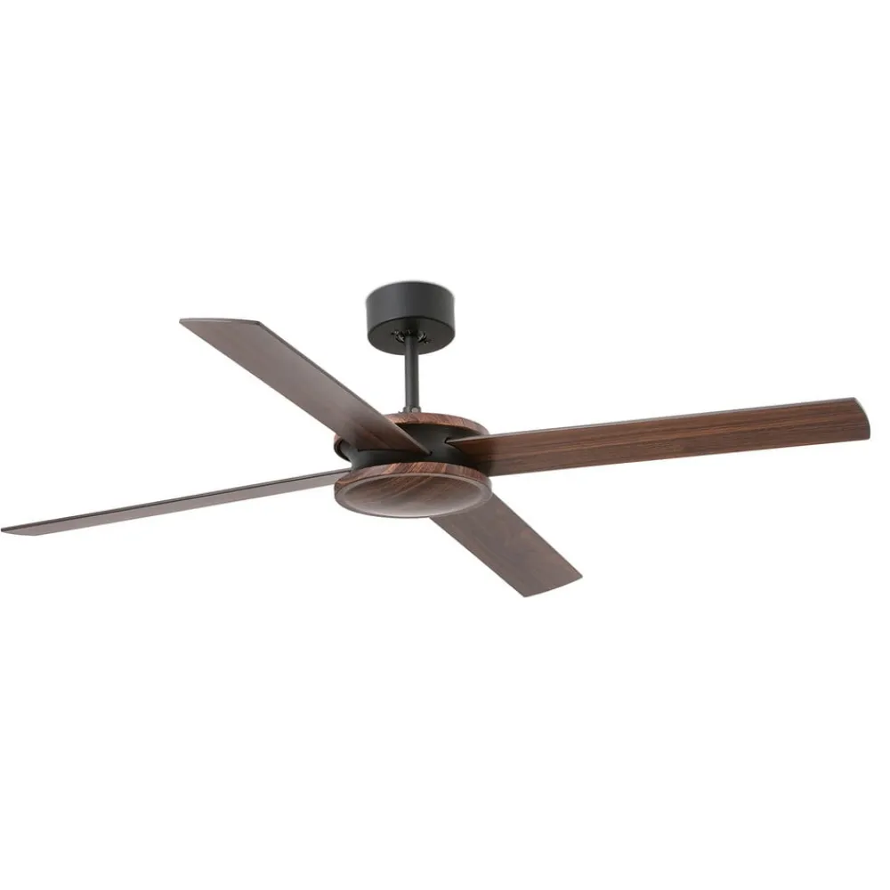 Polea loftventilator med roterende knive i sort og mørkt træ