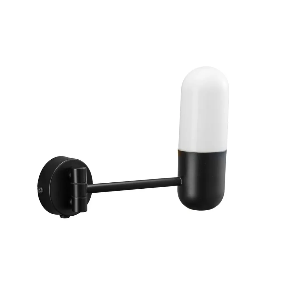 Zeta væglampe til badeværelser med kapslingsgrad IP44 Den cylindriske Zeta væglampe af matsort metal og opalt glas er velegnet til badeværelser takket være kapslingsgraden (IP44) og giver en behagelig belysning hele vejen rundt. Kan drejes 180°.