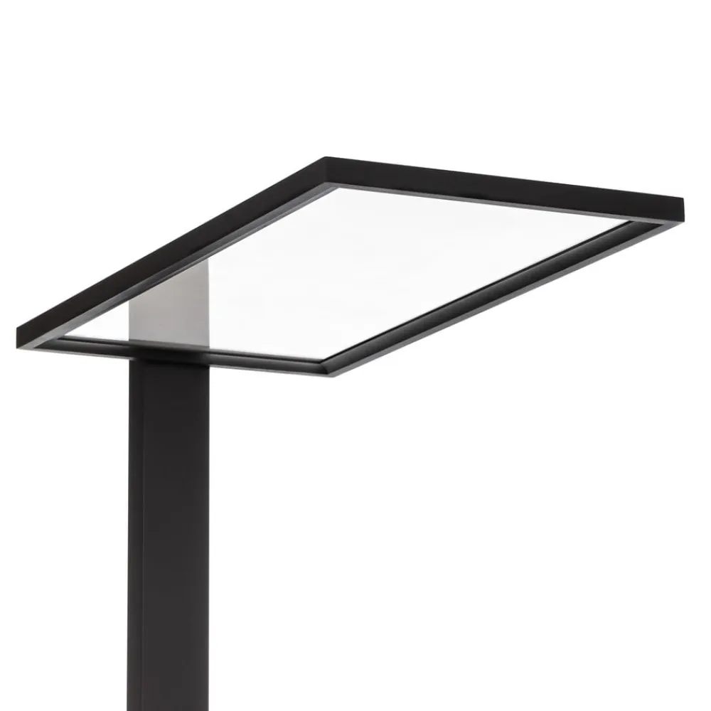 Sort LED-gulvlampe til kontor Taronis med integreret berøringsdæmper og U-formet fod Taronis er en gulvlampe til kontor med en sort overflade, der lover god brug i arbejdsområder og giver et universalhvidt lys, der er ideelt til koncentreret arbejde. Lysstyrken kan reguleres ved hjælp af touchdæmperen, og den U-formede fod gør det muligt at placere lyskilden omkring alle bordben. Da lyset udsendes opad og nedad, skabes der et naturligt allround-lys, som er behageligt at arbejde i – direkte/indirekte lysudsendelse – U-formet fod – touchdæmper – universalhvidt lys