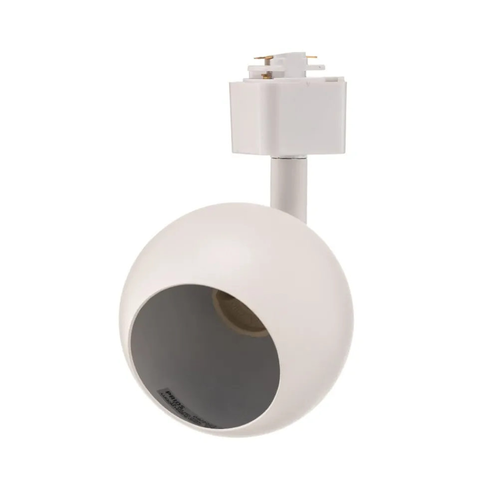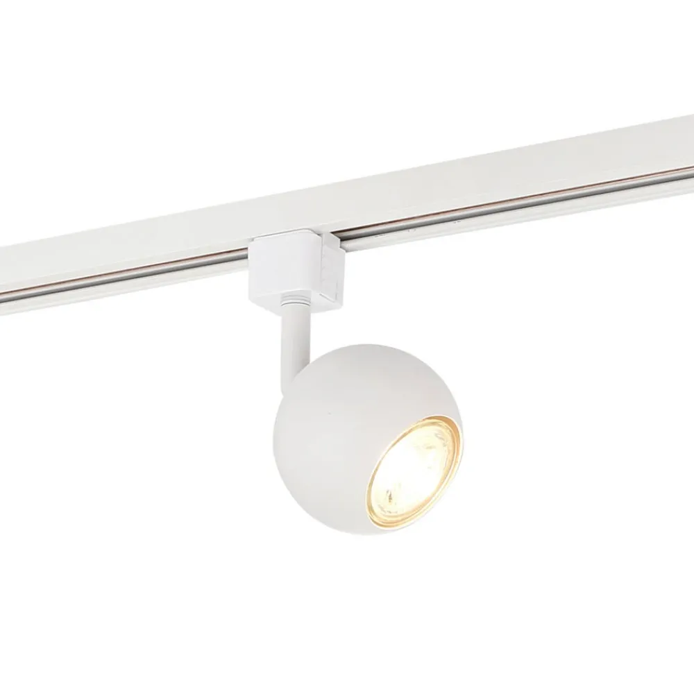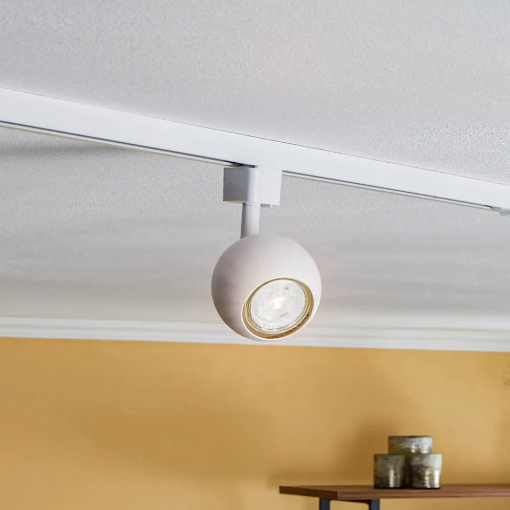 Hvid Felipo skinnespot i kugleform med adapter til 1-faset skinne Felipo monteres på en 1-faset skinne og er et godt supplement til de eksisterende komplette systemer i denne serie. Spotlightet ligner en kugle og har et tidløst overfladedesign i hvid, der passer til mange miljøer. Lampehovedet kan justeres efter behov, da det kan drejes og svinges. Den rigtige reflektorpære skal tilpasses kravene på stedet. Der findes f.eks. versioner med en køligere eller varmere lysfarve eller dem med en bred strålevinkel, som er mere velegnet til omgivelsesbelysning, mens en smal strålevinkel giver punktformet og målrettet lys.