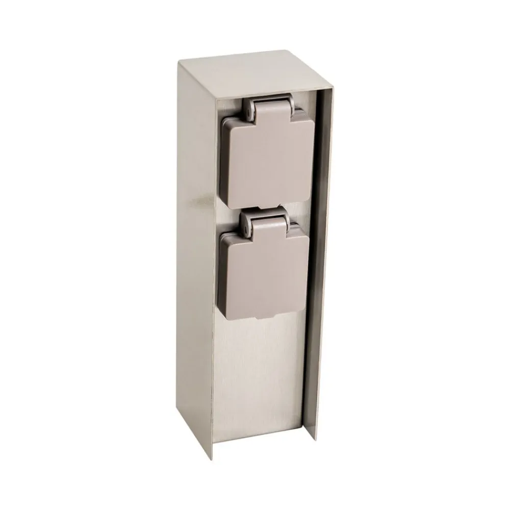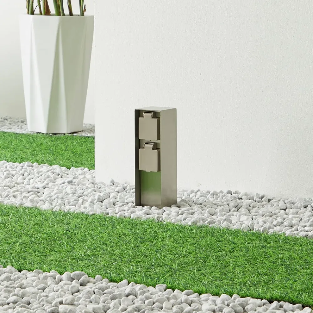 Det kantede design og overfladen i stål gør stikkontaktsøjlen Foranda til et passende objekt til moderne omgivelser. De to stikkontakter er forsynet med afdækninger, så vejret ikke kan skade enheden, og den er tilstrækkeligt beskyttet. Energisøjlen er et praktisk tilbehør til udendørs brug både sommer og vinter og er velegnet til tilslutning af elektriske arbejdsredskaber eller til sæsonbestemt udendørs belysning, der drives med stik.