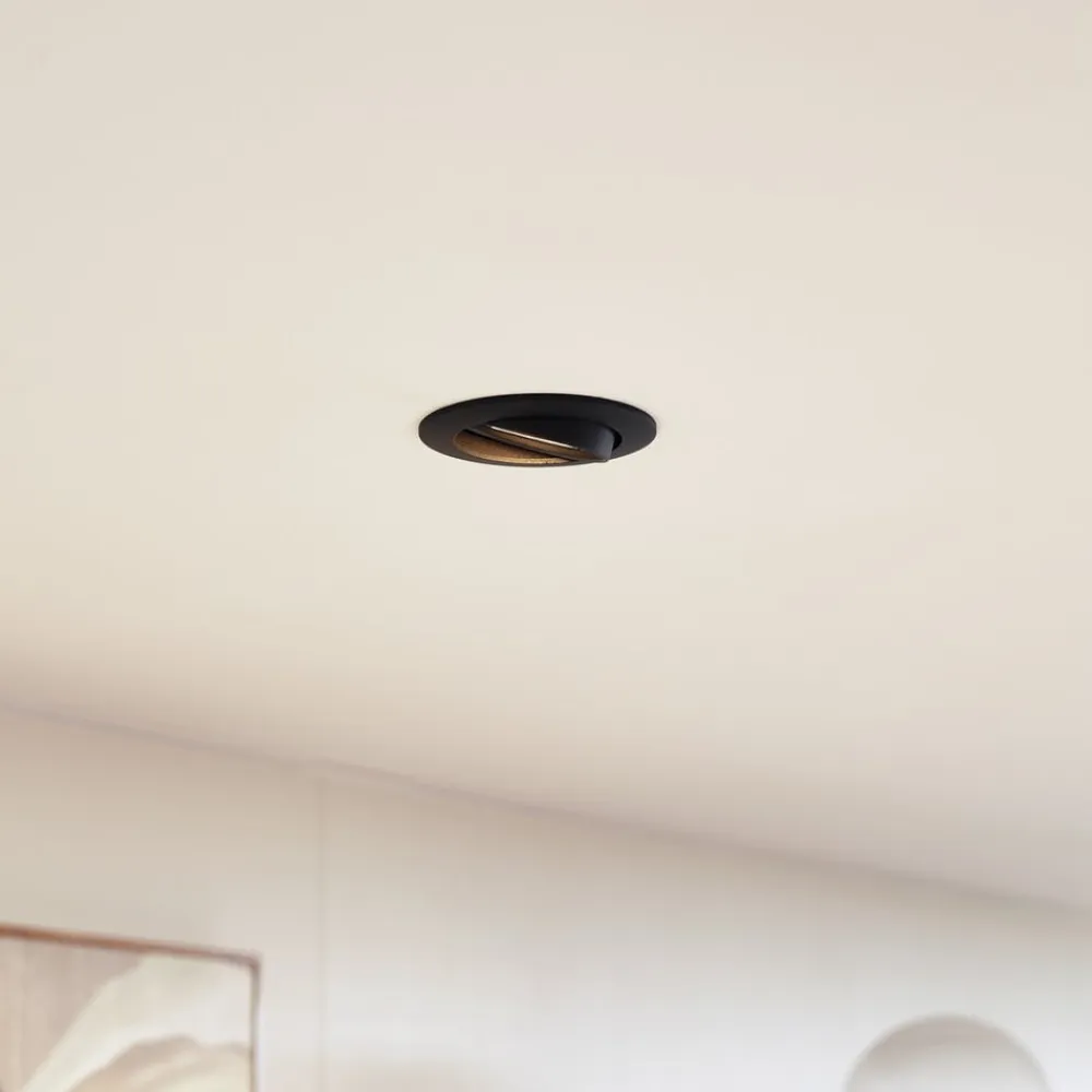Prios forsænket loftlampe Fibur, sort, aluminium, Ø 8,2 cm