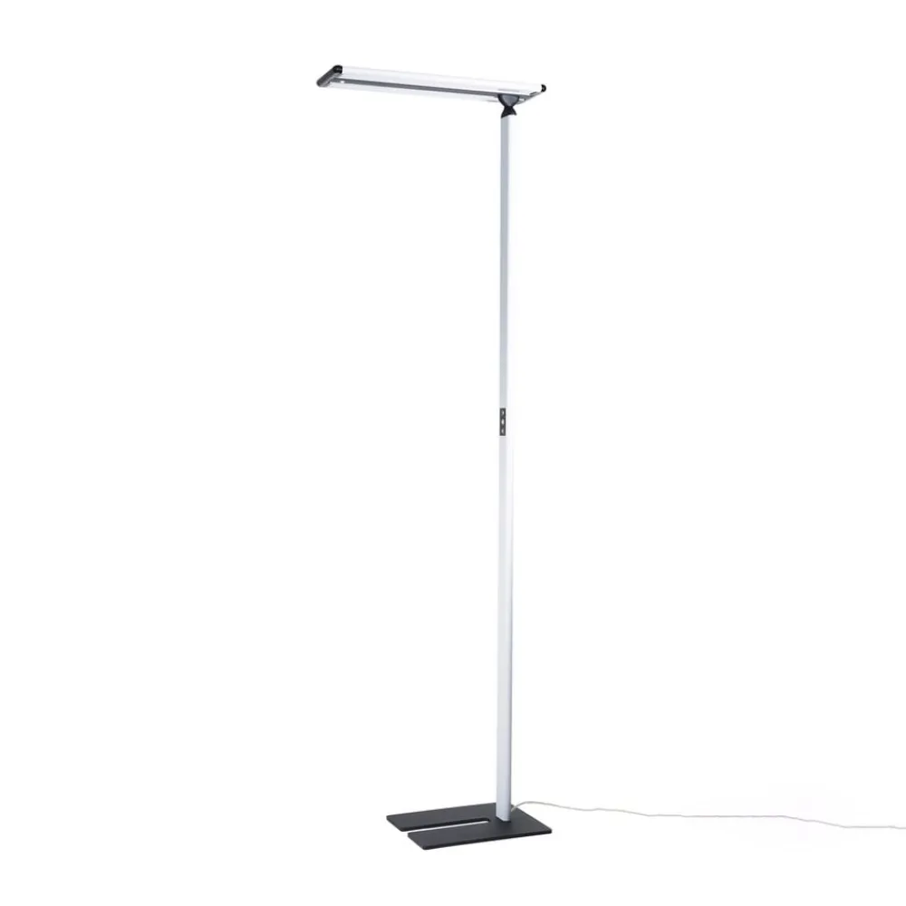 Pålidelig Zyair LED-gulvlampe med touchdæmper til kontoret Enhver, der leder efter den rigtige belysning til sit kontor, vil ikke blive skuffet over Zyair LED-gulvlampen. Den imponerer med sit enkle design og sin aluminiumsramme, som giver den en enkel karakter. De permanent installerede LED’er inde i lampehovedet producerer et universalhvidt lys, der er perfekt til belysning af kommercielle rum. Zyair LED-gulvlampen har en berøringsdæmper på basen, som kan bruges til at dæmpe de to lyskilder separat og give det rigtige lys på det rigtige tidspunkt. Hvis du vil skabe et harmonisk helhedsindtryk, er det værd at kombinere Zyair med andre armaturer i serien – UGR < 19 – IK02 – SDMC: 3 – U-formet base