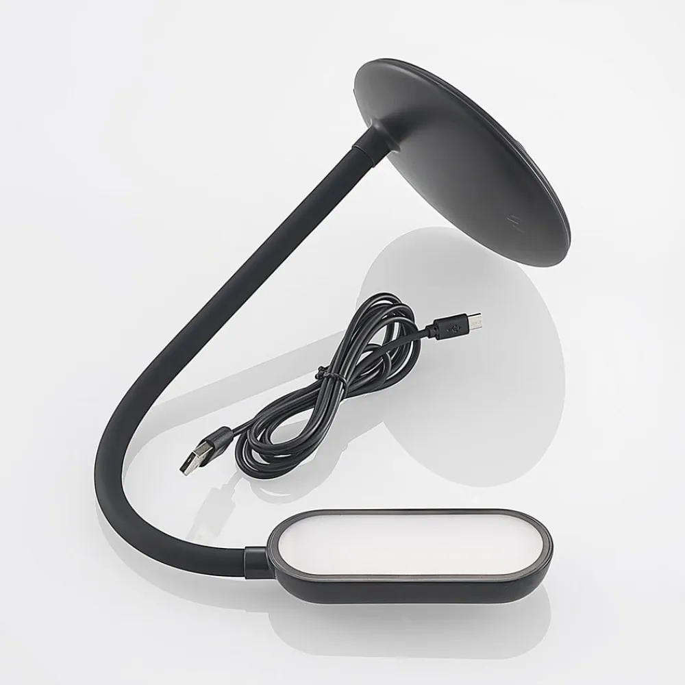 Prios LED genopladelig bordlampe Opira, sort, USB, touchdæmper