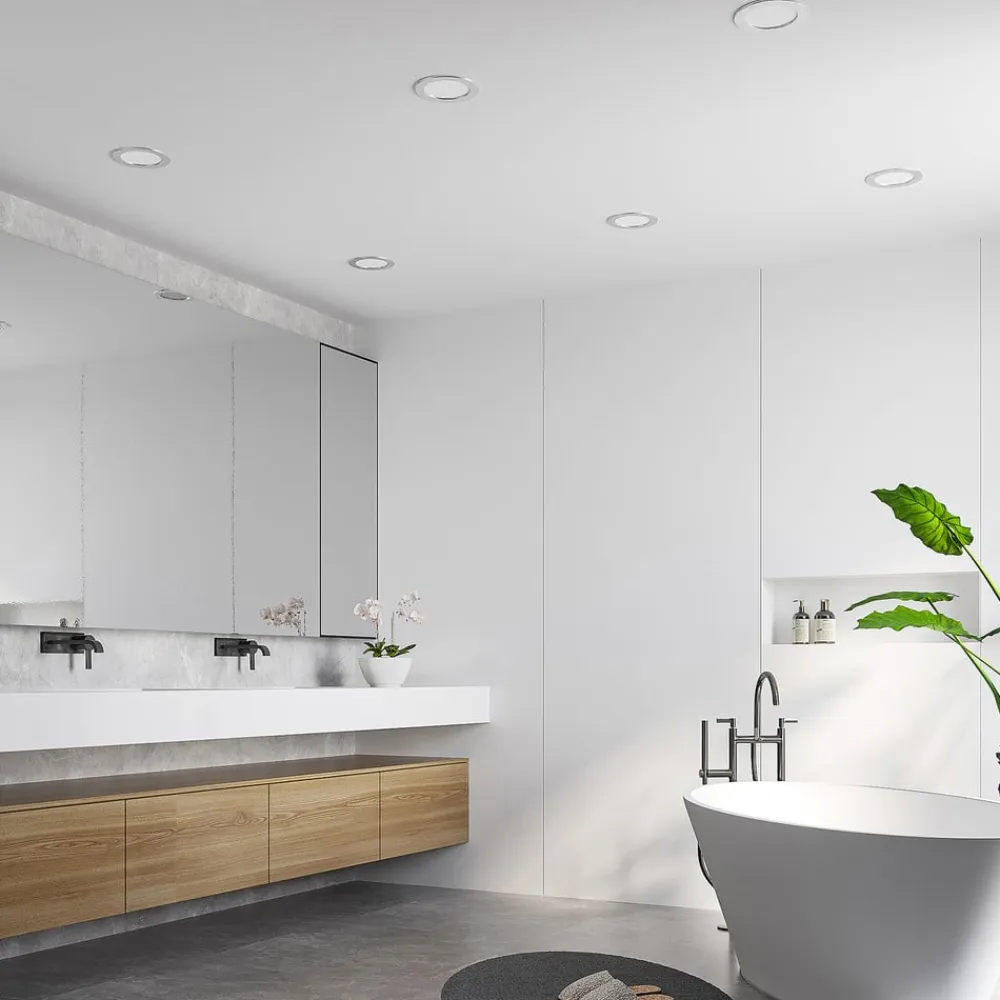 Sølvfarvet LED-indbygningslampe Cadance i rund form, IP44, justering af lysfarve før installation, dæmpbar – i et praktisk sæt med 3 Dette er en ægte allrounder, fordi LED-indbygningslampen Candance har forskellige tekniske fordele at byde på. Dens runde form og sølvfarvede finish giver den et særligt enkelt udseende til en bred vifte af anvendelser i private rum eller kommercielle miljøer, mens LED-indbygningslampen har en højere kapslingsgrad, hvilket betyder, at Candance uden problemer kan installeres i badeværelser og generelt fugtige rum. Før installationen kan lysfarven også indstilles ved hjælp af en DIP-kontakt på huset, og den effektive LED-pære kan også dæmpes, hvis der er installeret en ekstern lysdæmper. Lampen leveres i et sæt med 3. Installationsdiameter: – Variant 1 (11,5 cm): 10-11 cm – Variant 2 (17 cm): 15-16 cm – Variant 3 (22 cm): 20-21 cm – Variant 4 (24 cm): 22-23 cm